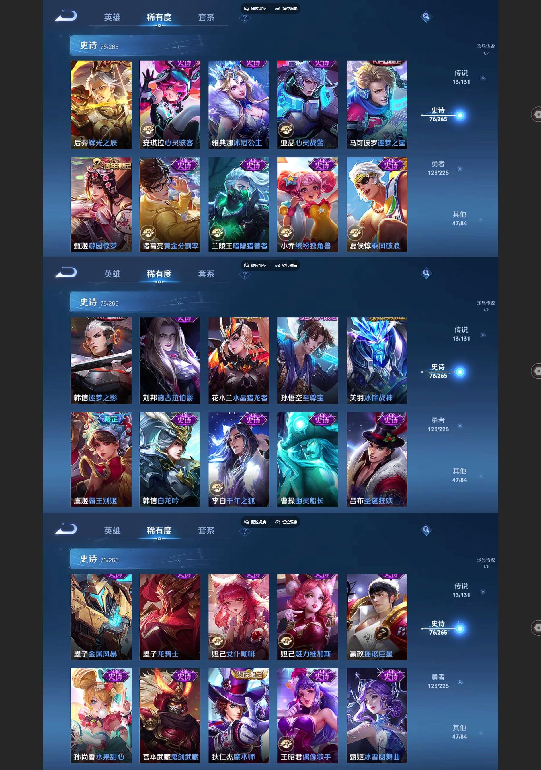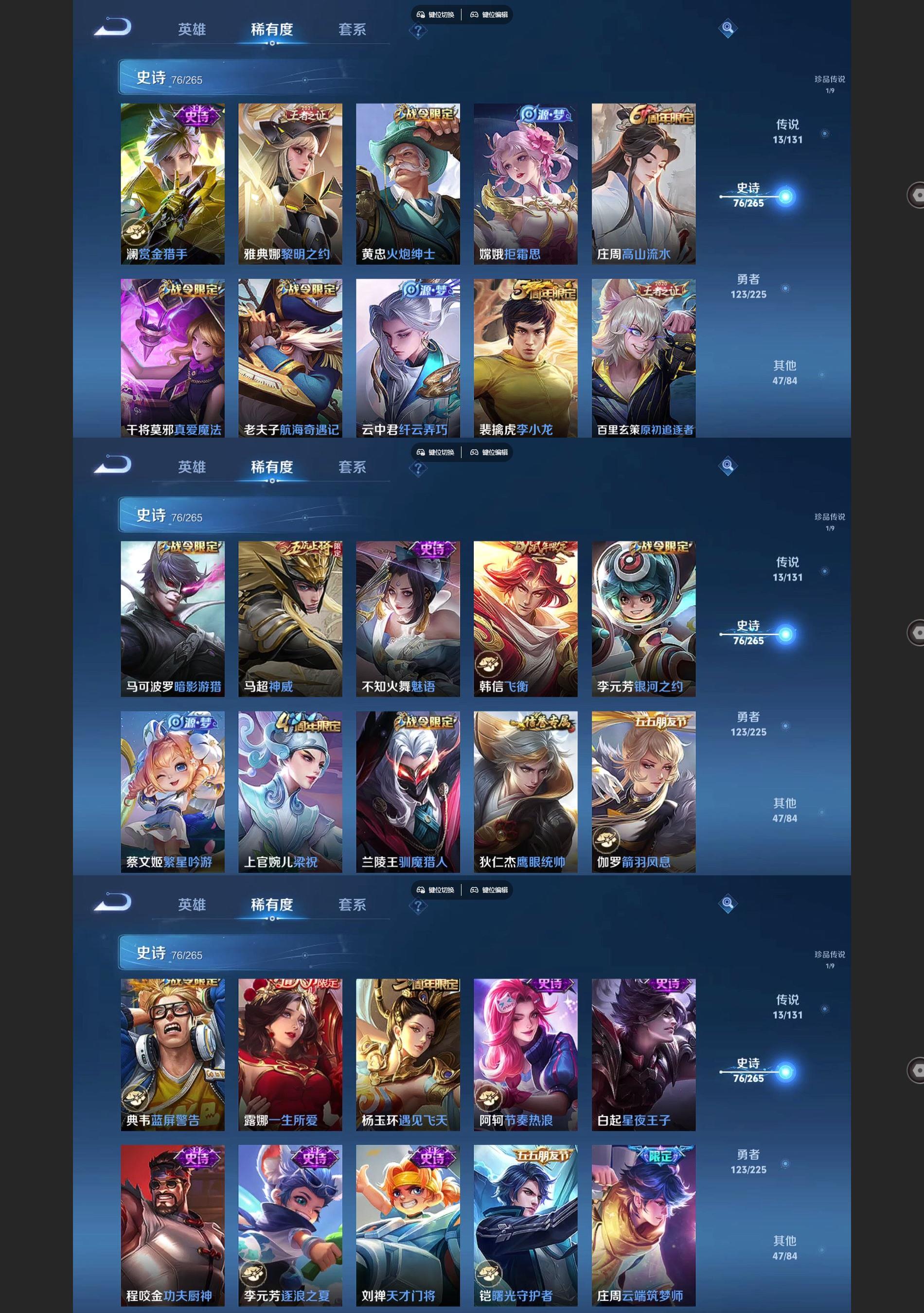 【传说】 凤求凰 幻光神枪 愿照九州拓 鸣野蒿 启明星使 武陵仙君 淬星耀世 无双飞将 炽阳神光 云鹰飞将 黄金狮子座 超时空战士男 地狱之眼