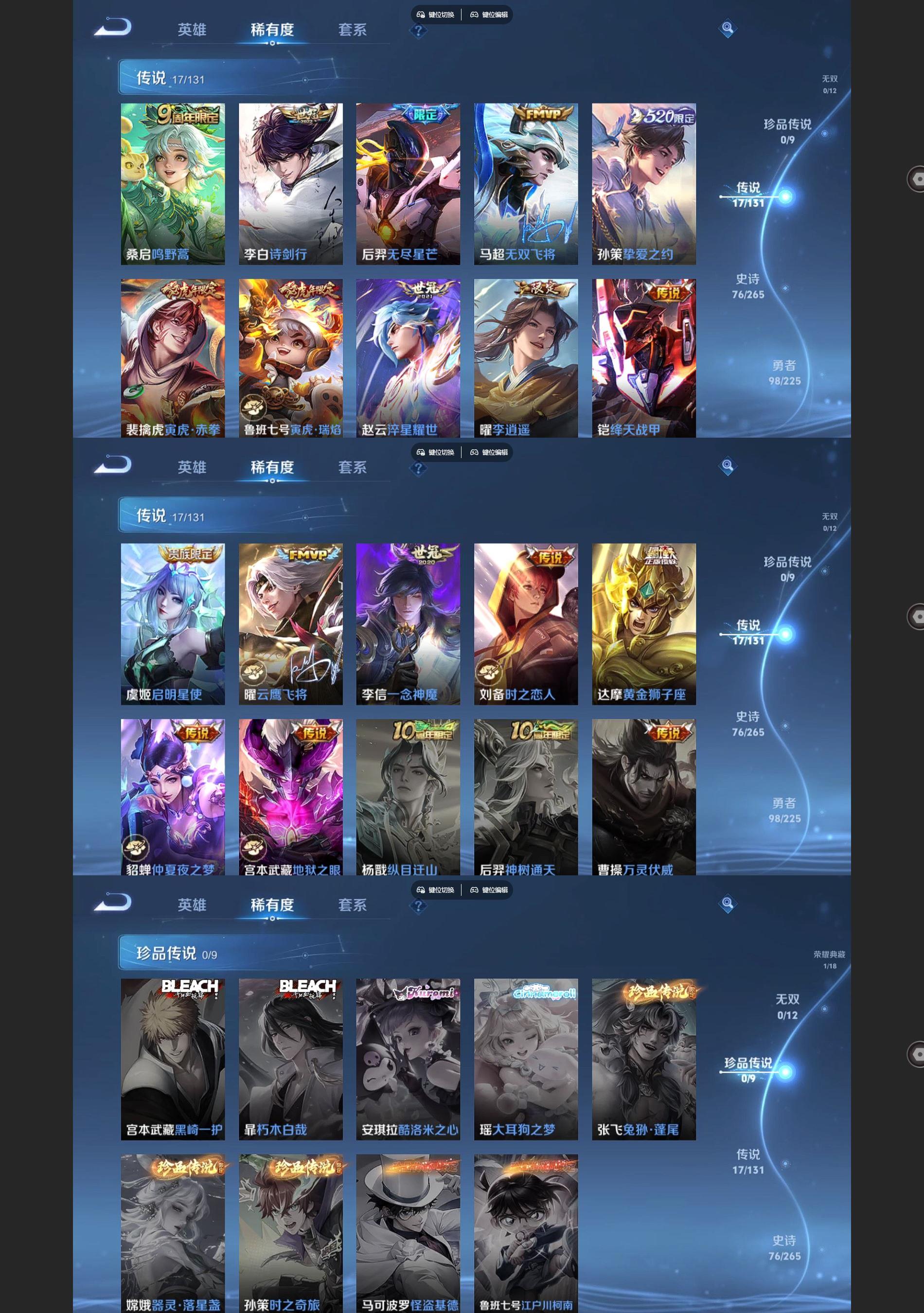 【传说】 鸣野蒿 启明星使 寅虎瑞焰 寅虎赤拳 李逍遥 无尽星芒 挚爱之约 绛天战甲 淬星耀世 无双飞将 诗剑行 云鹰飞将 一念神魔 黄金狮子座 时之恋人男 仲夏夜之梦 地狱之眼