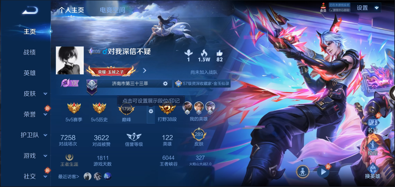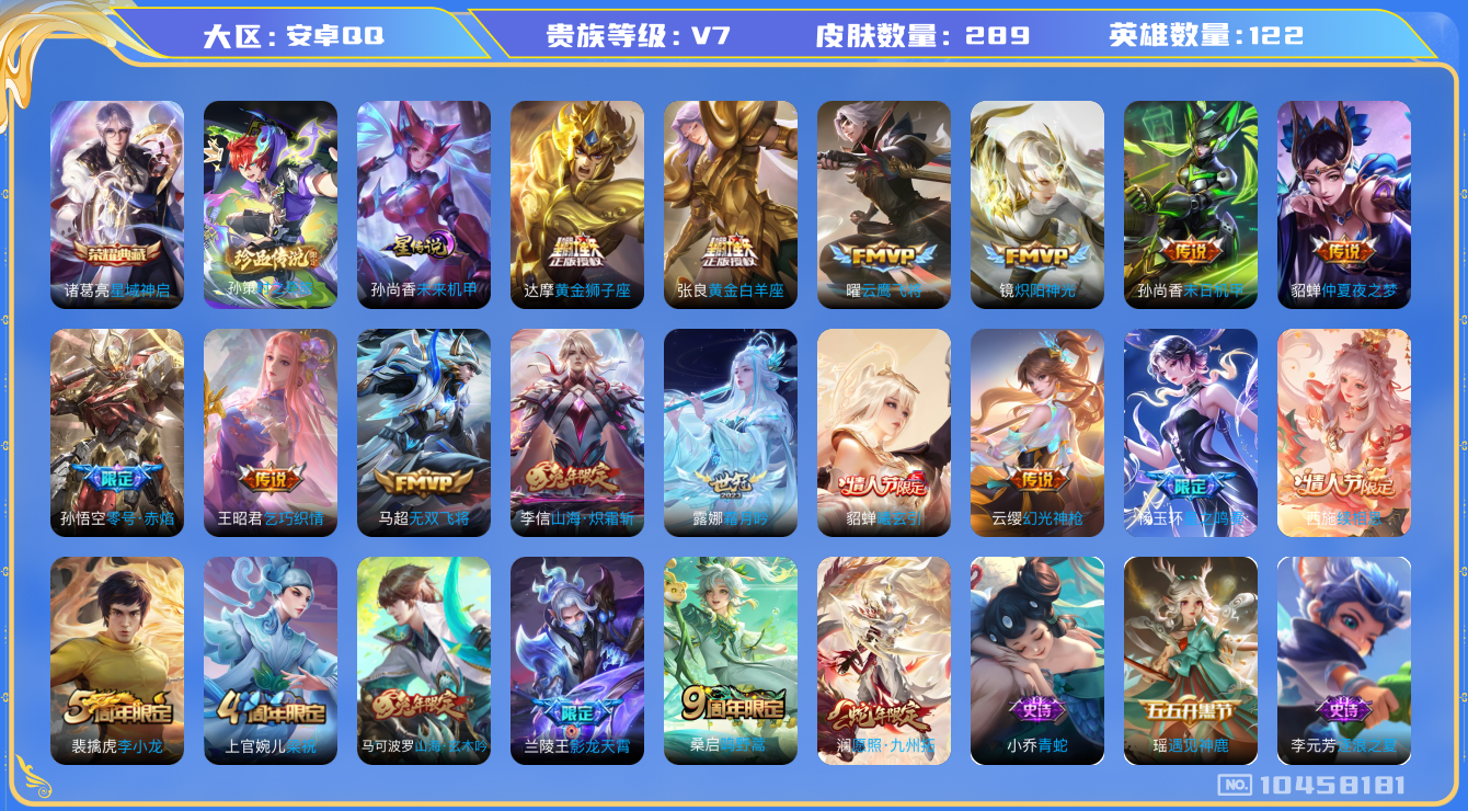 V7-最强王者段位-122英雄-289皮肤-1典藏-0珍品无双-0无双-1珍品传说-18传说-78史诗