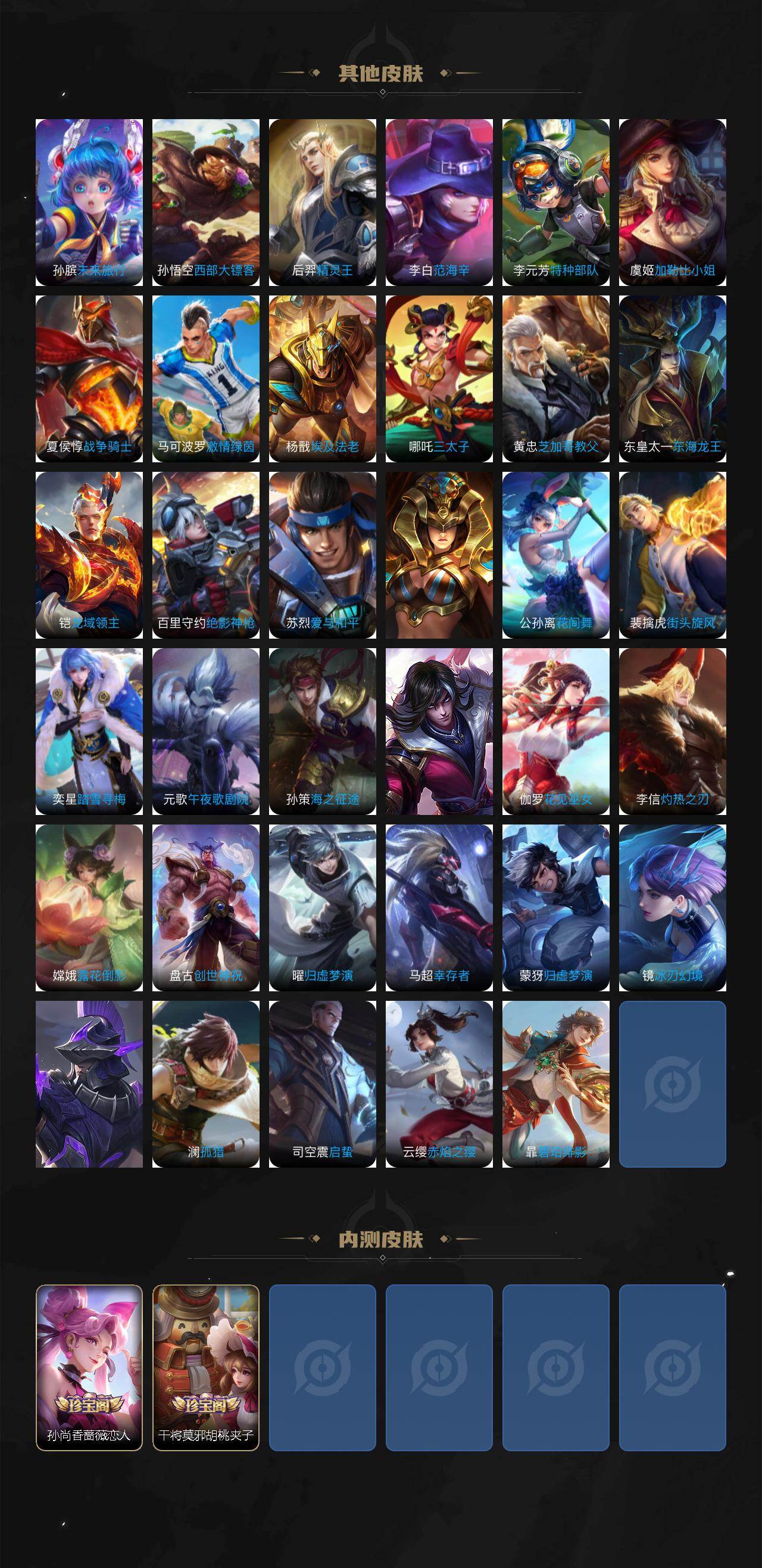 贵族6-贵族积分15360-165皮0典藏6传说1无双1珍品传说-2个英雄全皮