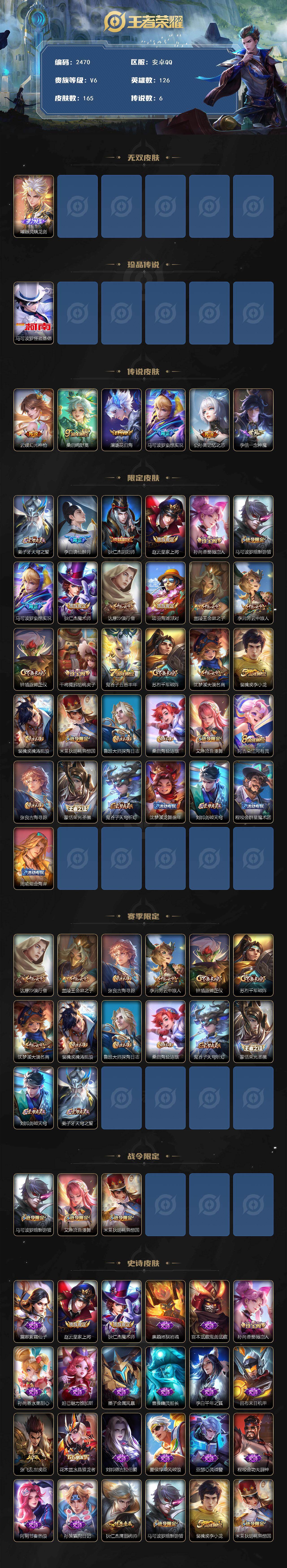 贵族6-贵族积分15360-165皮0典藏6传说1无双1珍品传说-2个英雄全皮 安卓手Q404区165皮0典藏6传说1无双1珍品传说V6