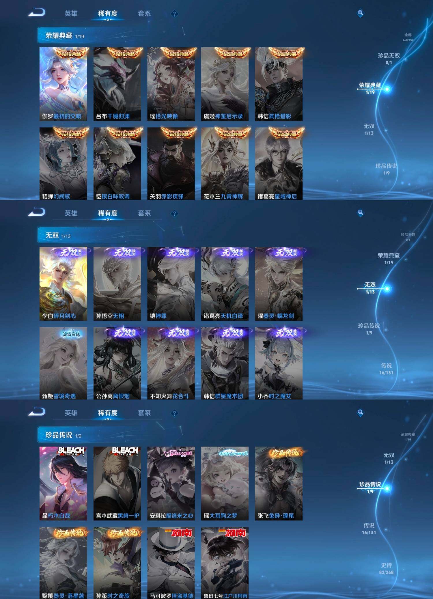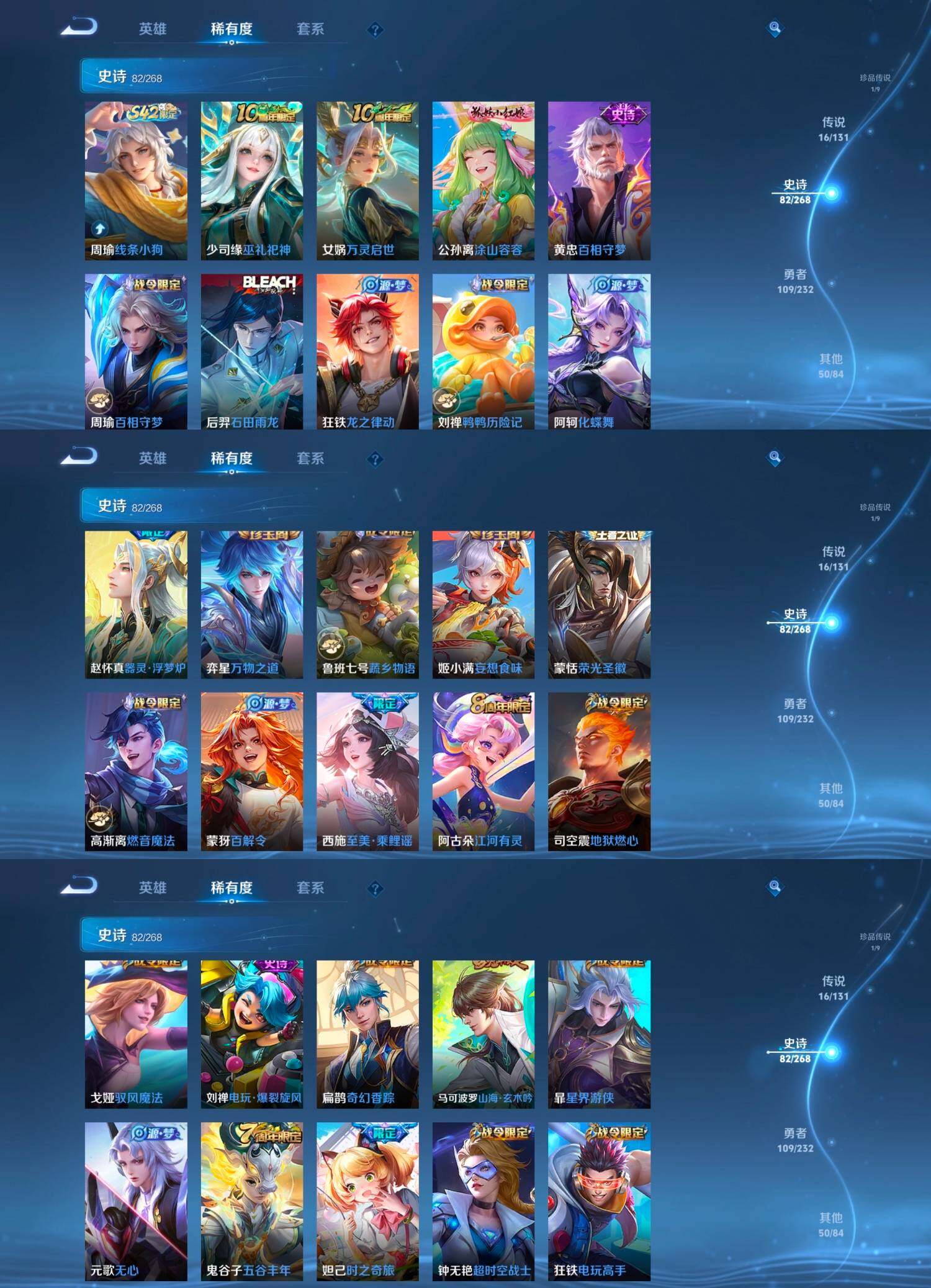 安卓Q-V8-永恒钻石III段位-127英雄-260皮肤-1典藏皮肤-1无双-1