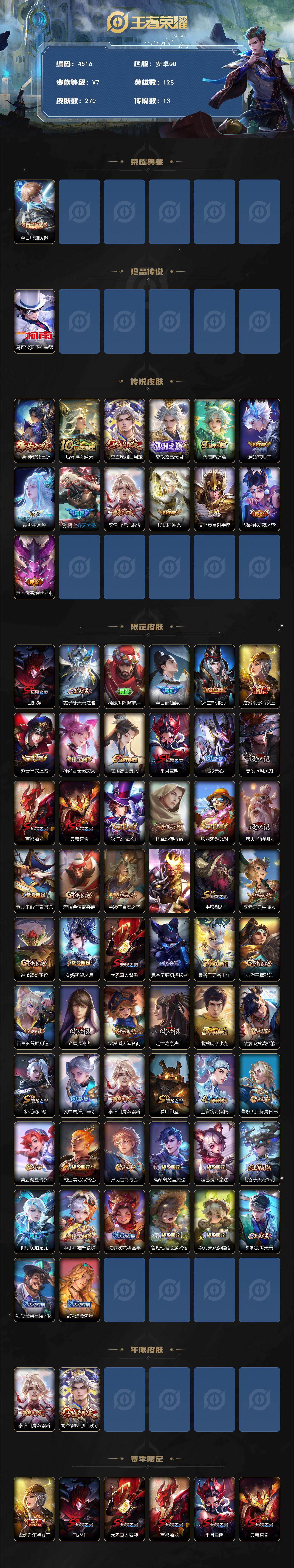安卓手Q75区270皮1典藏13传说0无双1珍品传说V7