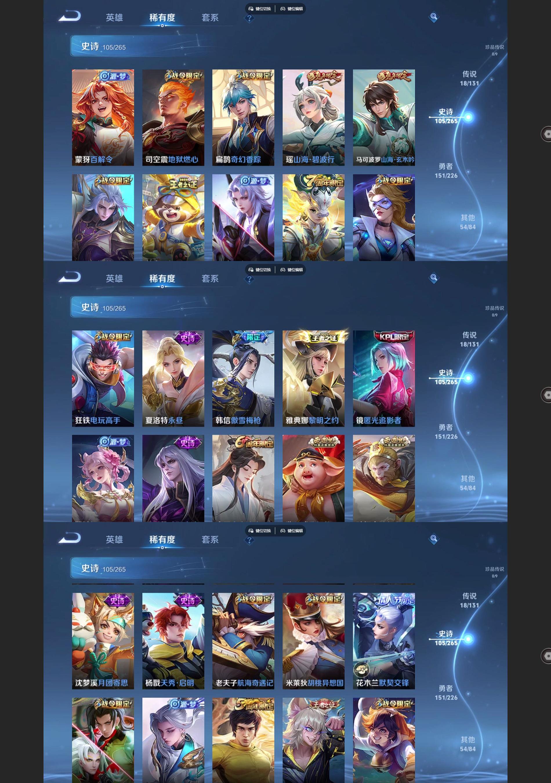 【传说】 九山相柳 神树通天 云诺千山 鸣野蒿 白虎志 启明星使 寅虎瑞焰 山海苍雷引 山海琳琅生 山海炽霜斩 零号赤焰 绛天战甲 淬星耀世 怒海麟威 云鹰飞将 久胜战神 黄金狮子座 末日机甲策
