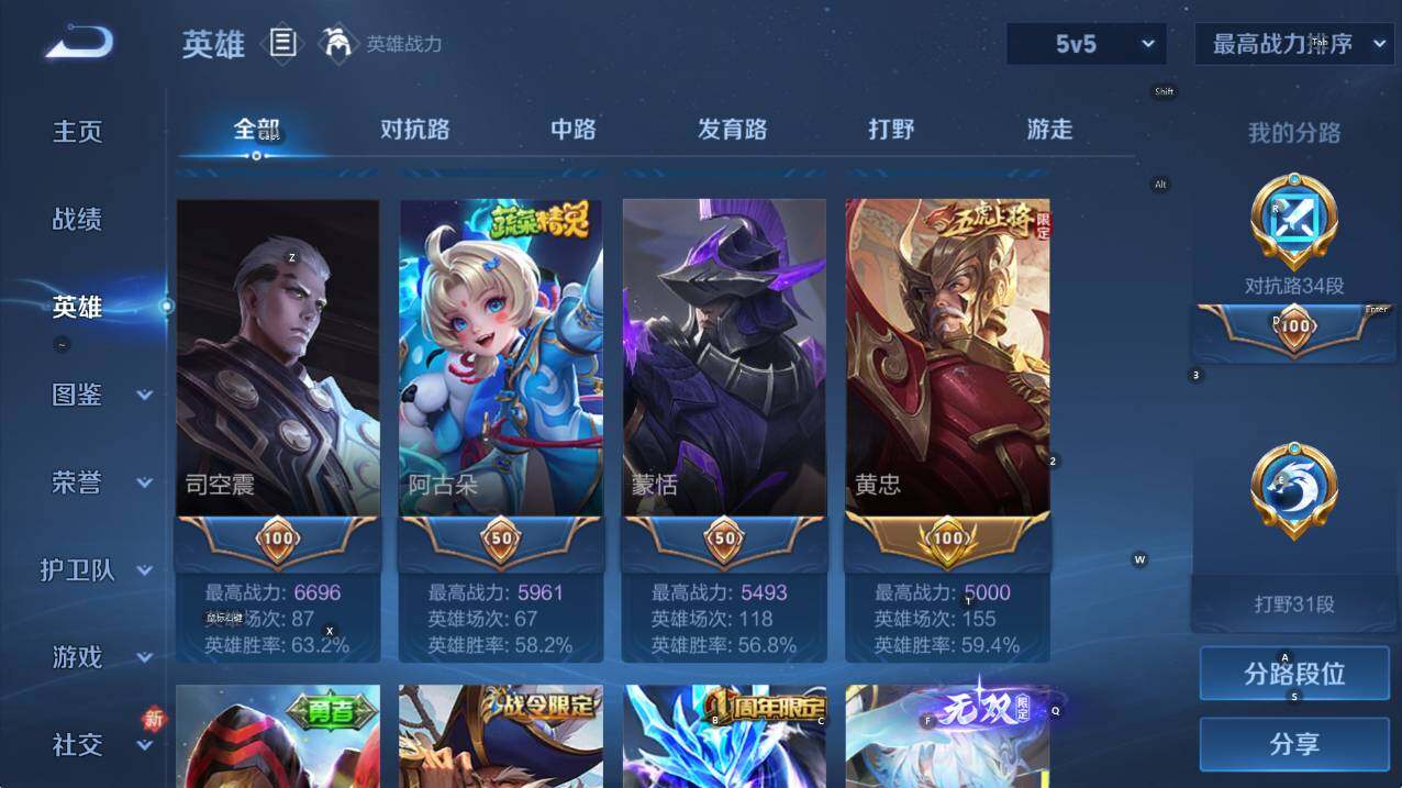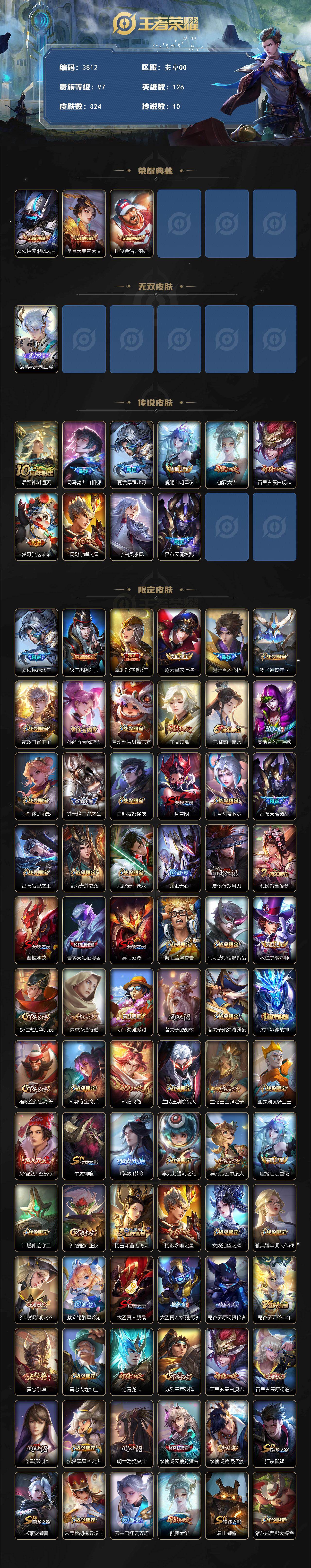 皇冠号 万战芈月 金标黄忠 7700云中君 7500马超 贵族8-324皮3典藏10传说1无双 安卓手Q116区324皮3典藏10传说1无双V7