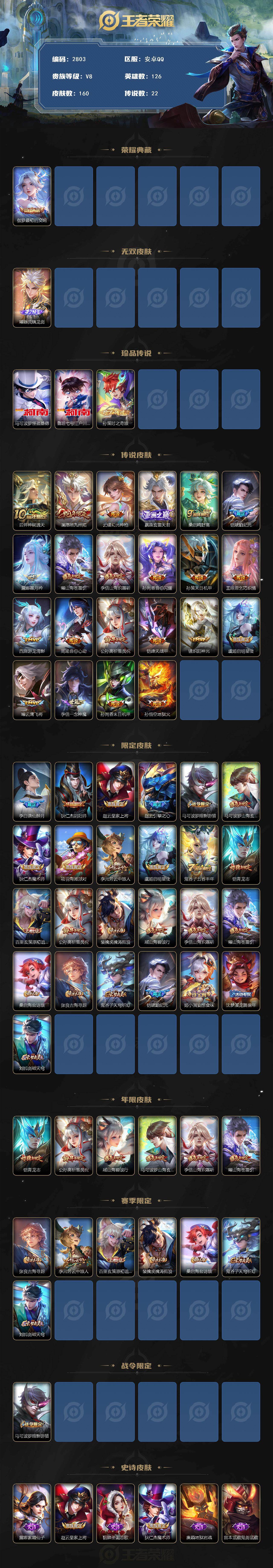 贵族8-160皮-1典藏-1无双-3珍品传说-22传说-4全皮-改名卡4-星传说星际治安官安卓手Q433区160皮1典藏22传说1无双3珍品传说V8
