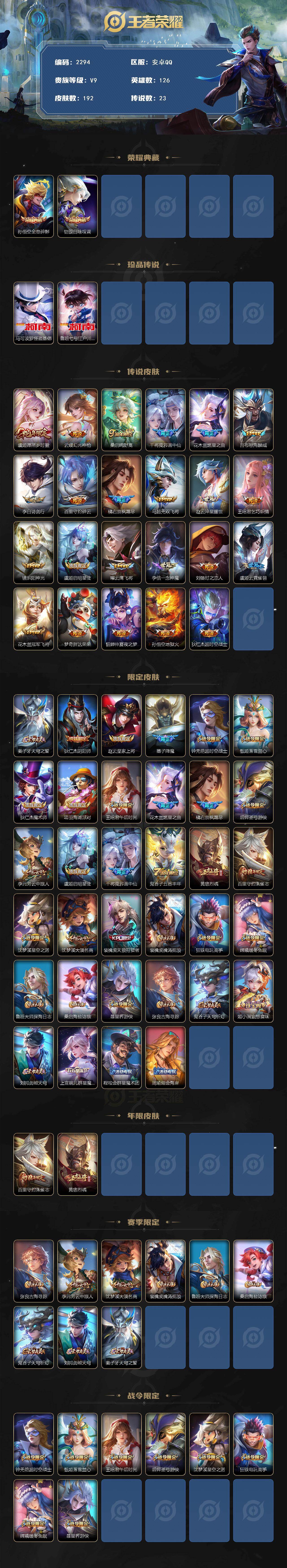 贵族9-贵族积分127999-幻夜逐光天幕、凤鸣九霄天幕-192皮-2典藏-23传说-0无双-2珍品传说 安卓手Q432区