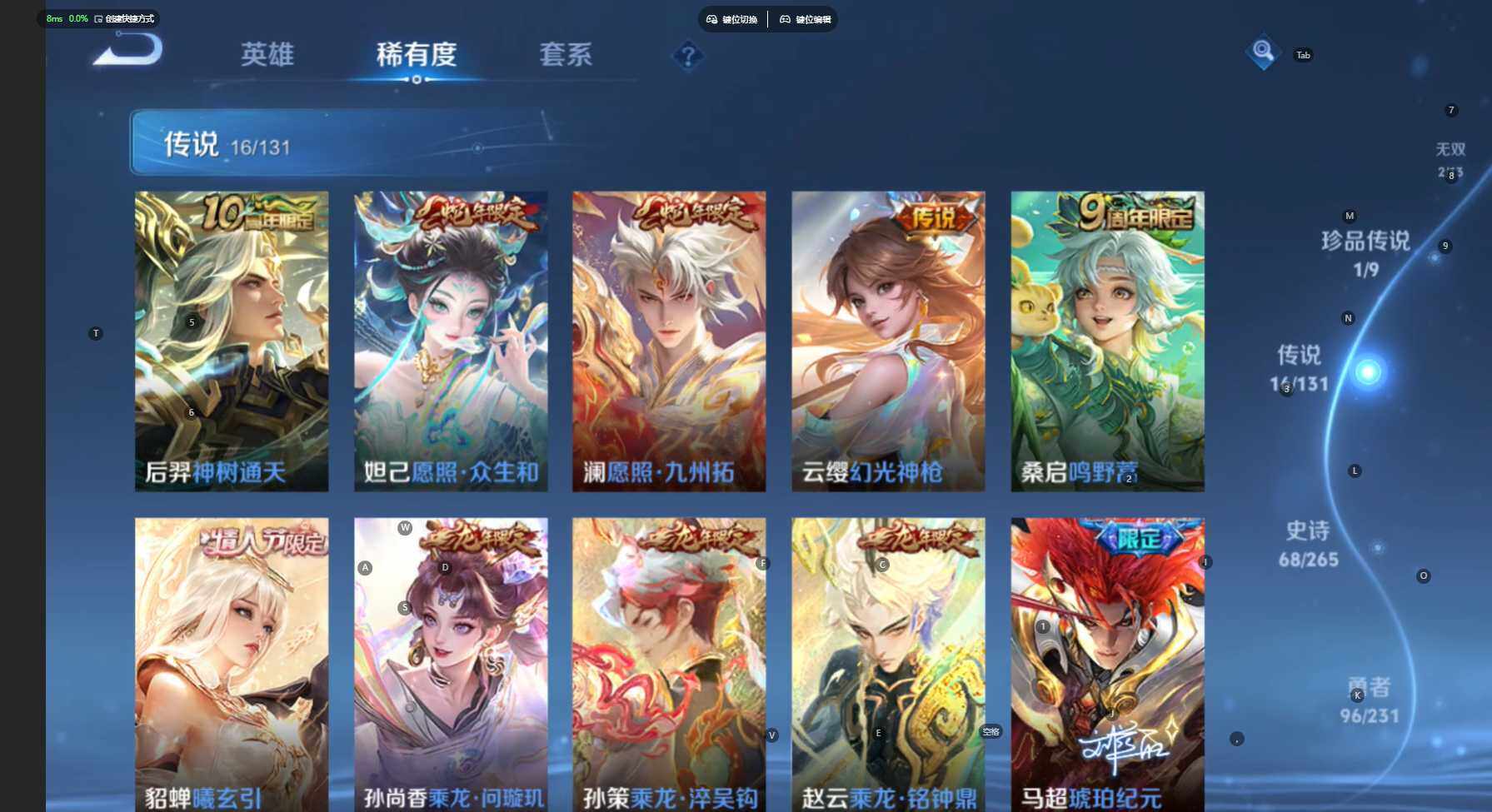 安卓Q 女号!妹子号!典藏瑶无双瑶!V8-205皮肤-1典藏皮肤-2无双-1珍品传说-16传说-68史诗-86限定