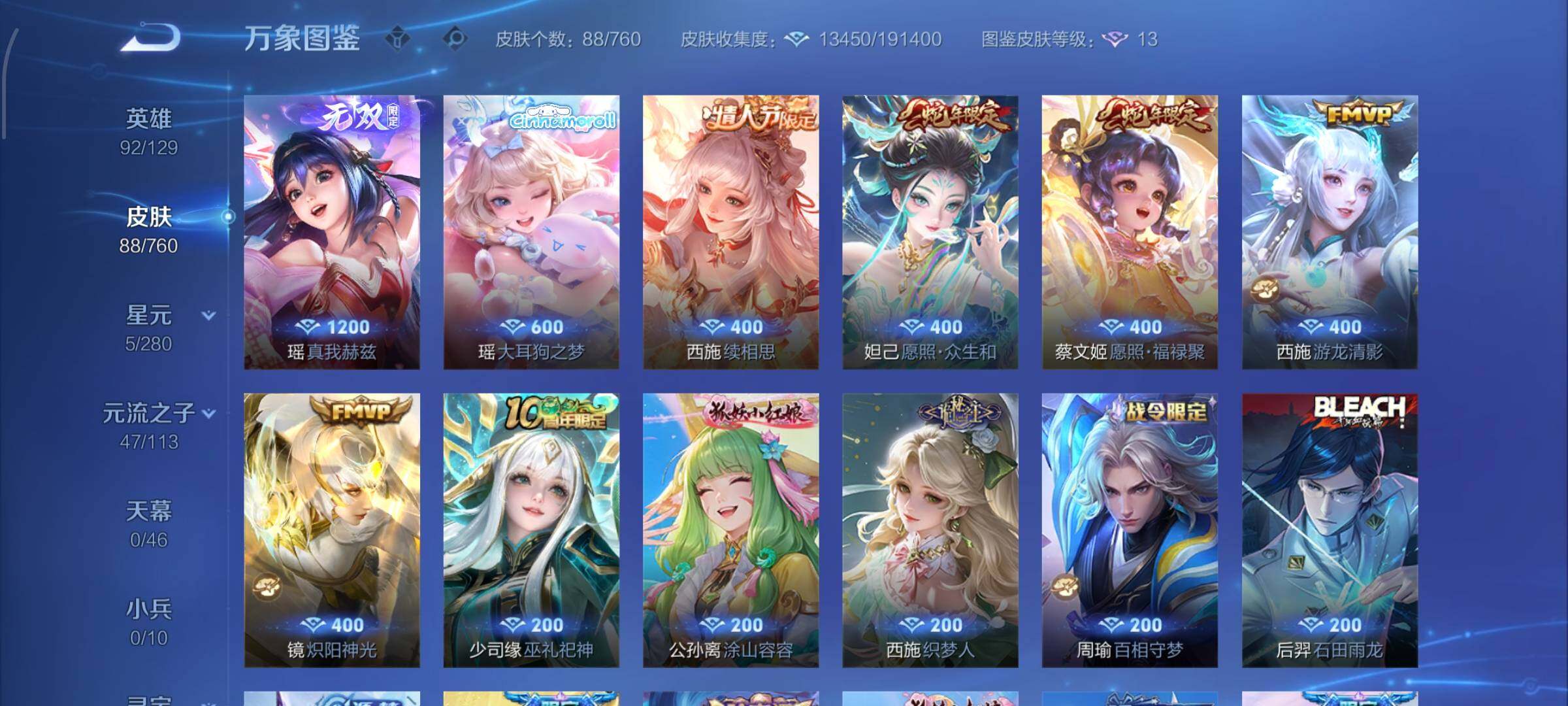 【英雄全皮】:西施全皮,少司缘全皮