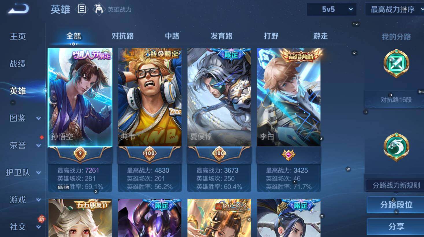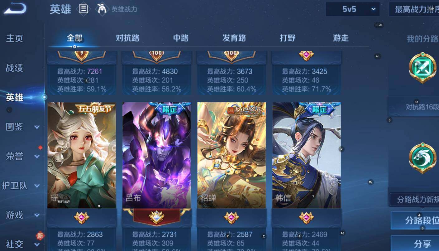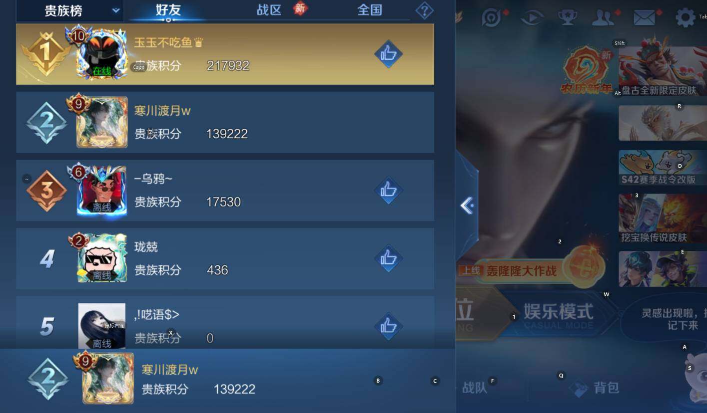 贵族9-331皮2典藏21传说1无双-5个英雄全皮 安卓手Q166区331