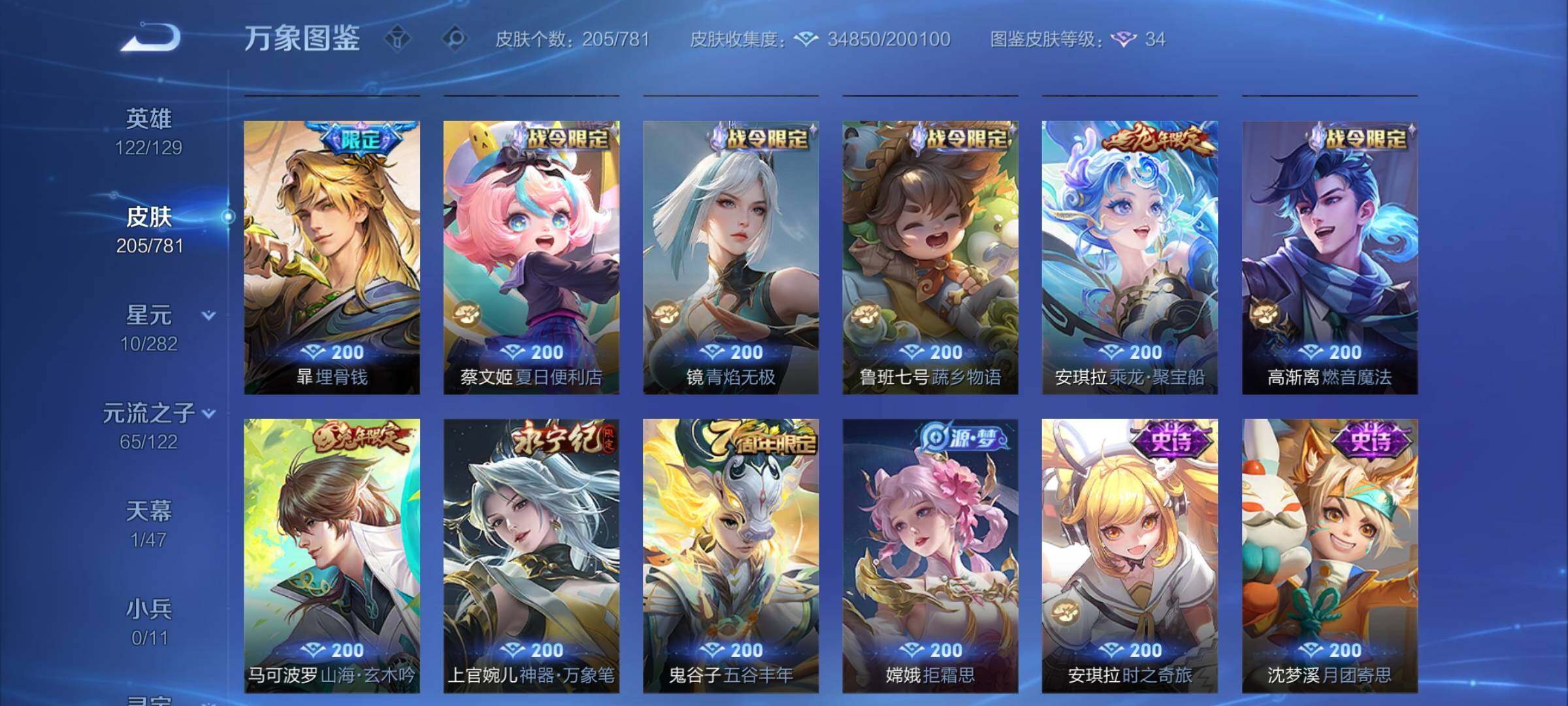 【极品女号·财神纳福天幕·天鹅之梦·银白咏叹调·真我赫兹·大耳狗之梦·云诺千山·心动手记·续相思·愿照山河定·愿照千秋盛·愿照众生和·愿照九州拓·愿照福禄聚·愿照岁时盈·映山客·妄想实况·音你闪耀·满蛇年限定·可二次】YXw15388-安卓WX-122英雄-205皮肤-2王者印记-80铭文-贵族积分4w【贵族7】【2典藏·1无双·1珍品·1星传说·18传说·1天幕·26按键】【因赛季更新游戏段付以上号为准!】