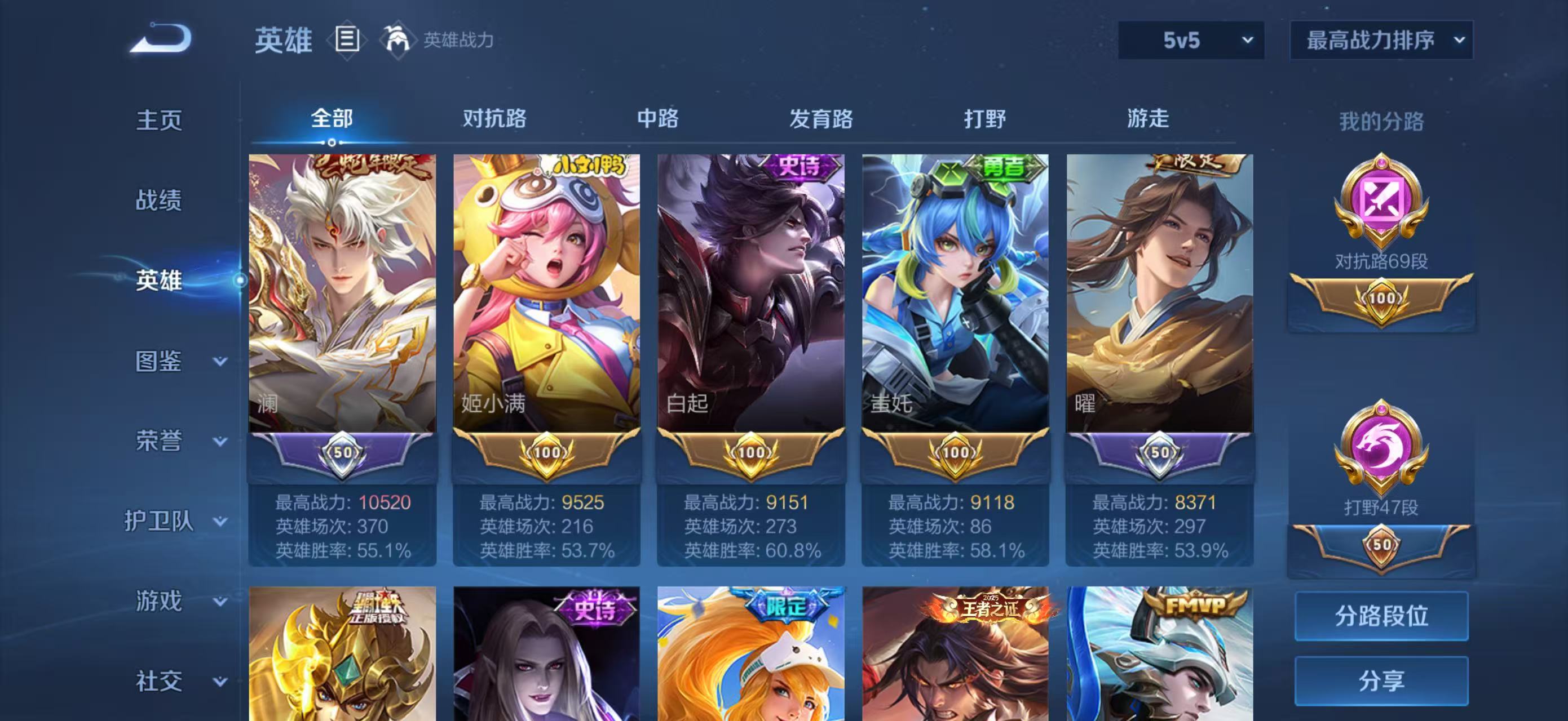 69段对抗路,目前传奇王者102星,巅峰赛1800,22传说一典藏一珍品传说,10个金标多万战
