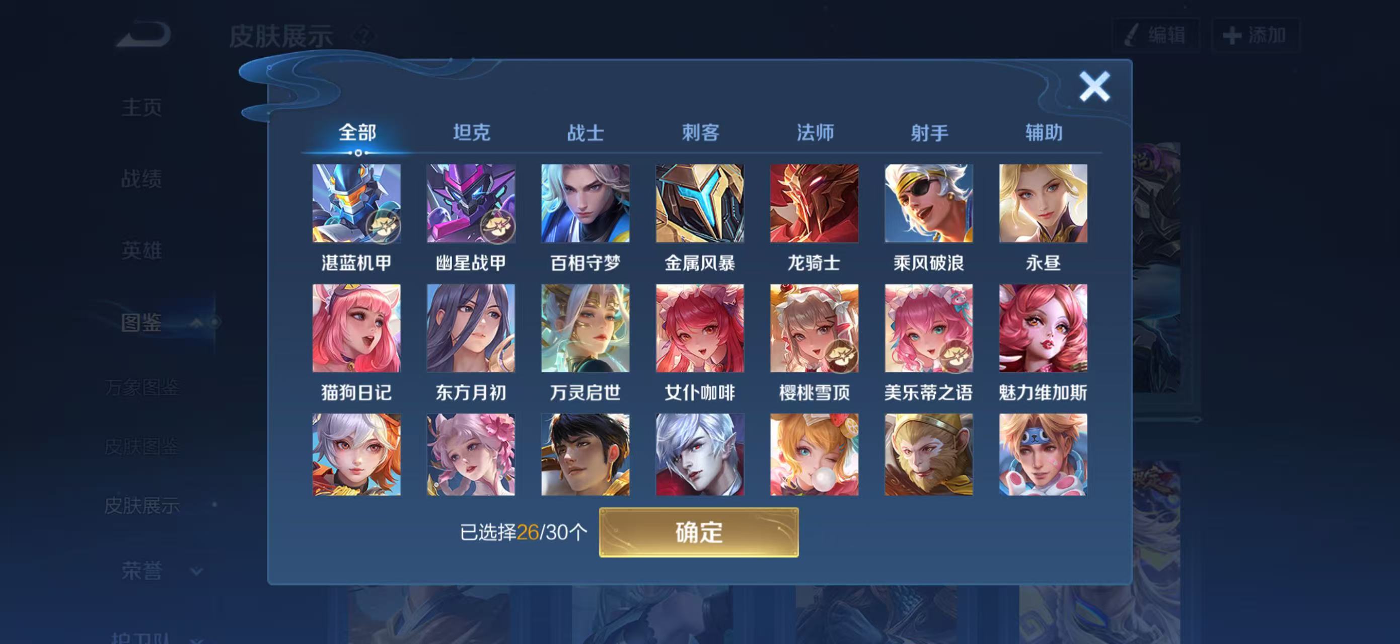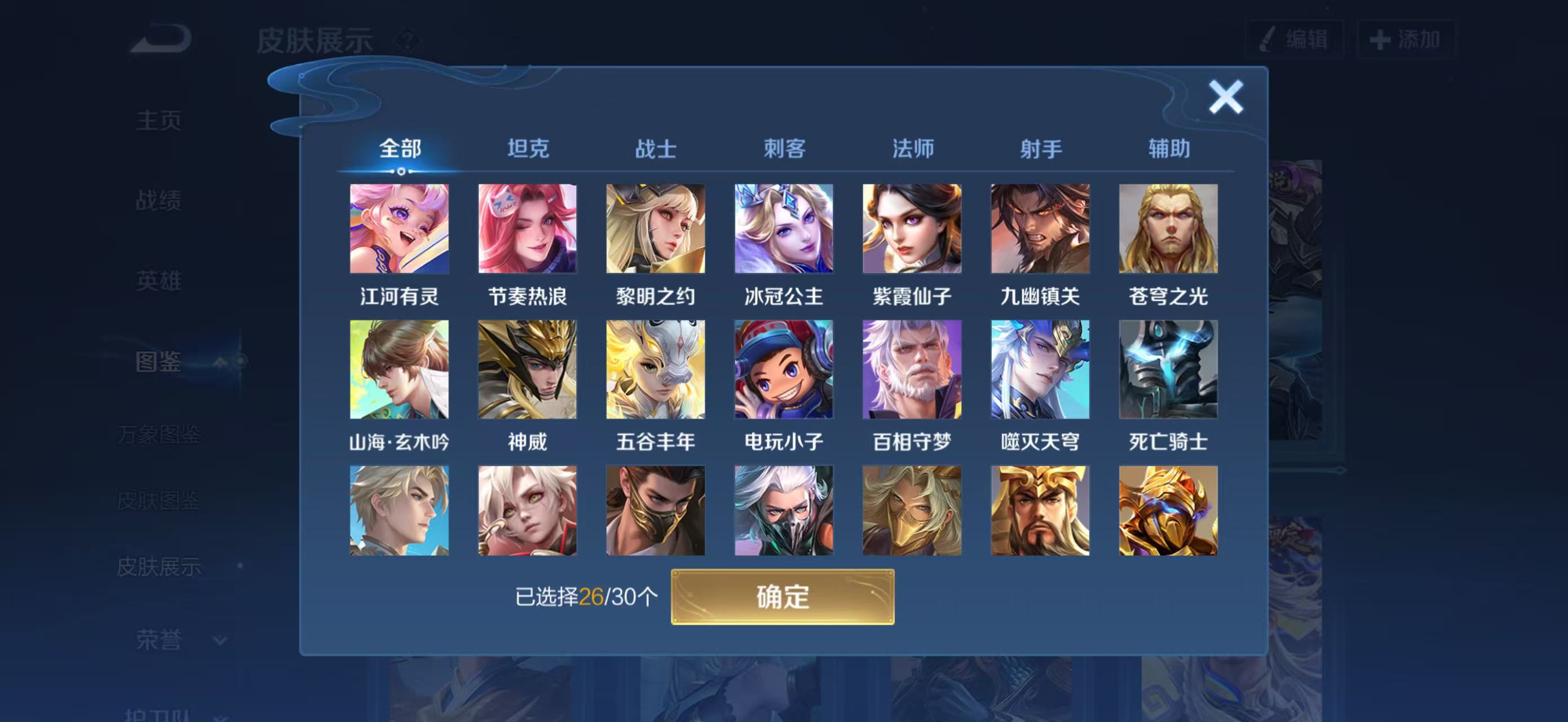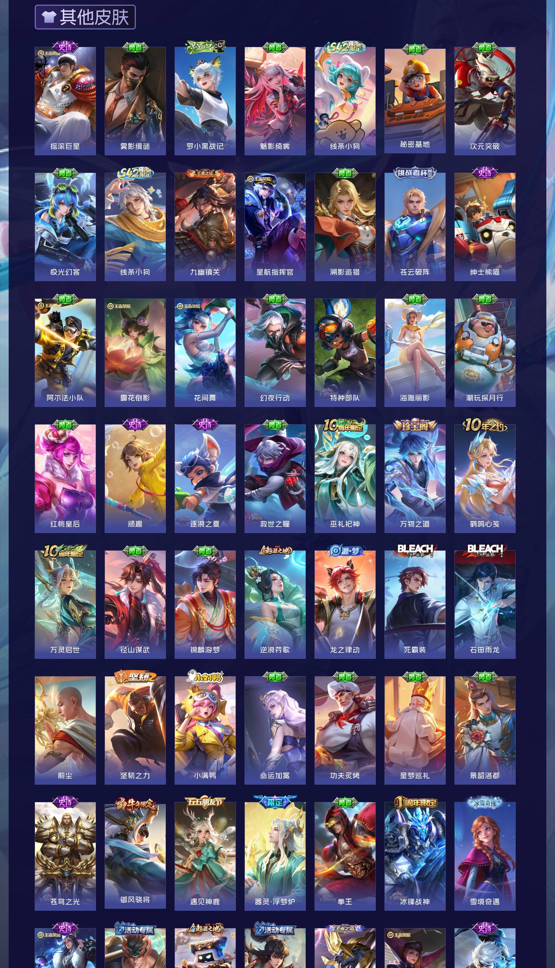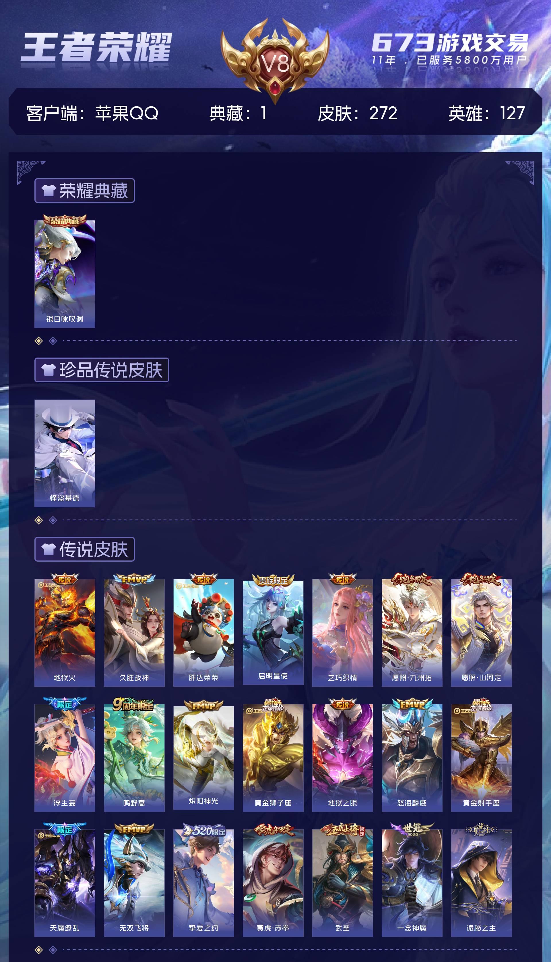 V8 皮肤272 英雄127 传奇王者 荣耀典藏1 珍品传说1 传说22 其他皮肤253