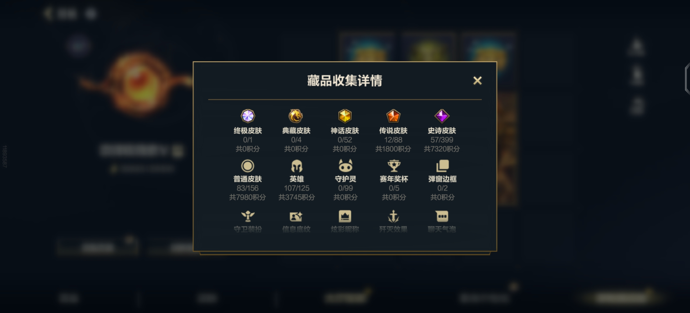 【编号33709】【店长推荐捡漏号】【商品标题】:107英雄-152皮肤