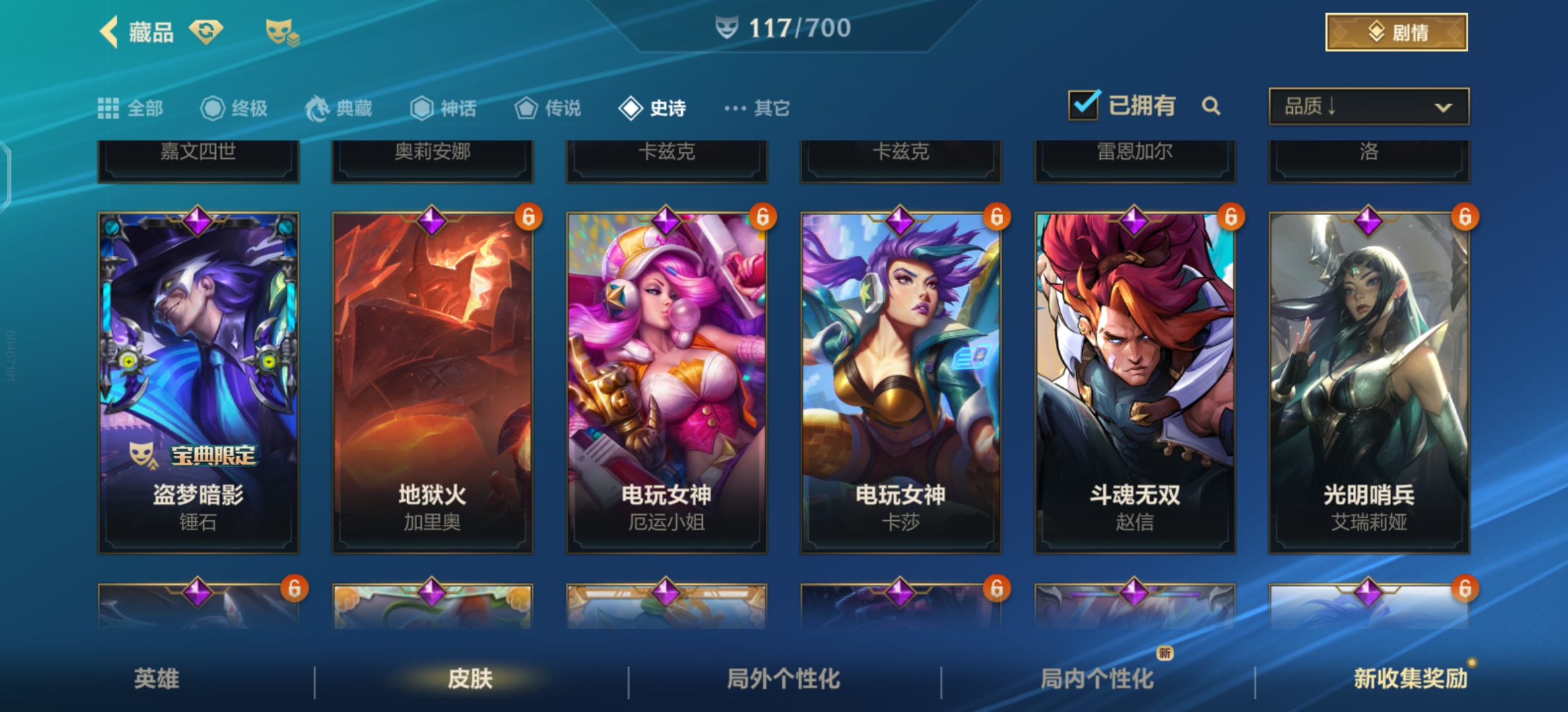 【编号90074】【店长推荐捡漏号】【商品标题】:77英雄-117皮肤