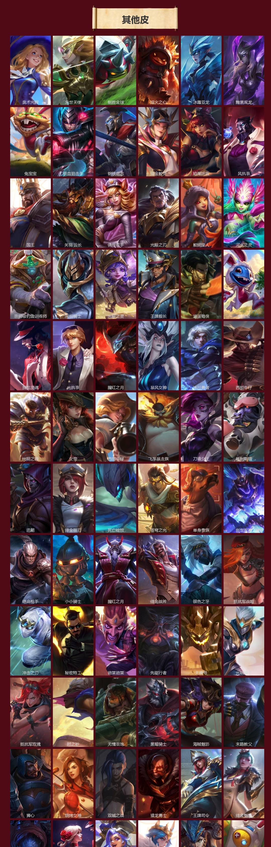 【限定皮肤】龙的传人,赵云子龙,冬季仙境发条,水晶玫瑰皇子,美猴王,水晶玫瑰永恩,水晶玫瑰琴女,关羽云长
