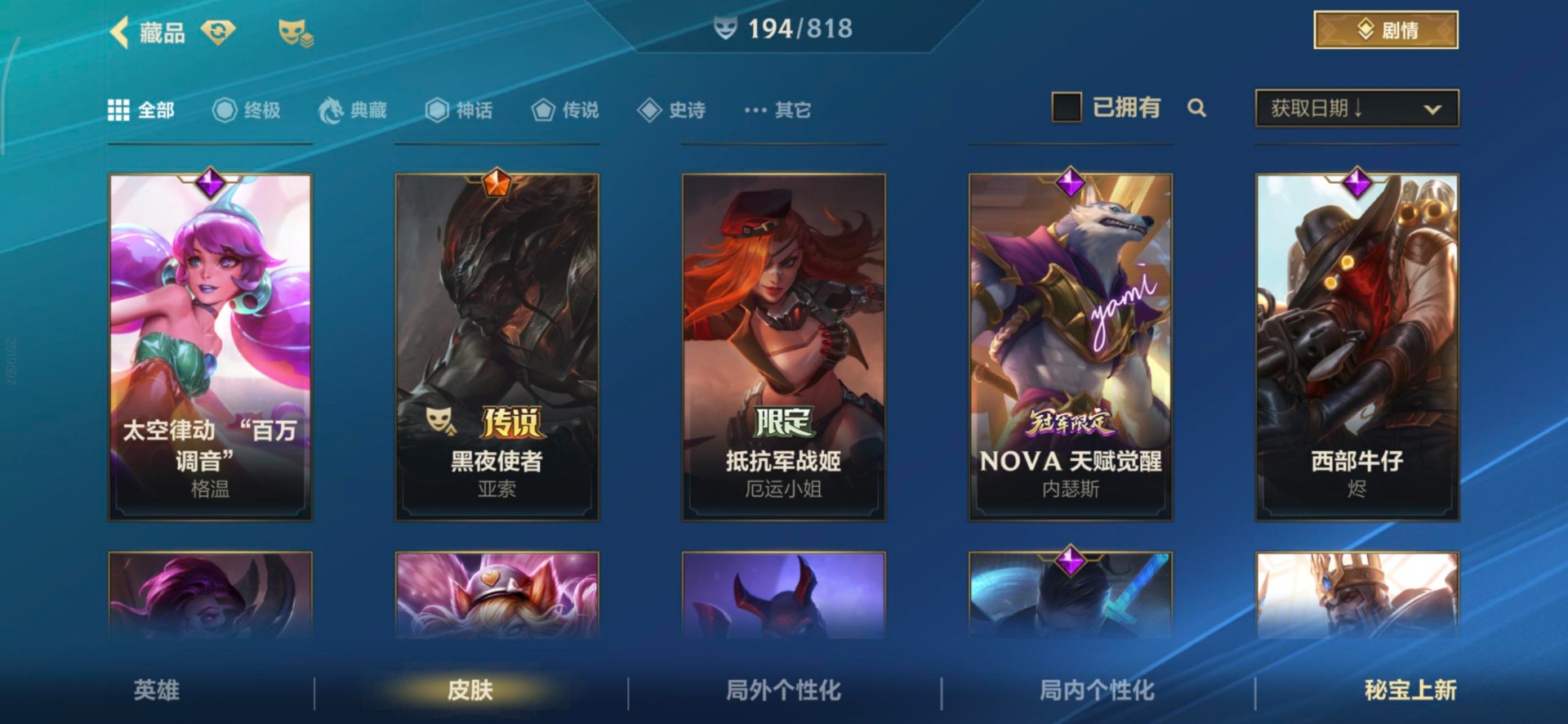 [17106742]1神话 8限定 7传说 83史诗 194皮肤 可二次 可修改实名