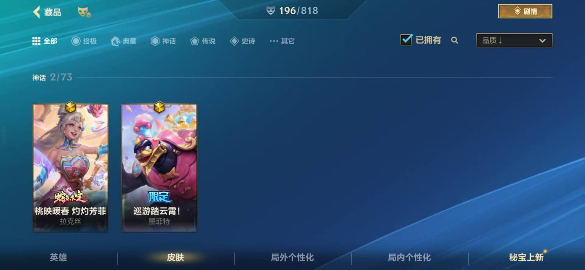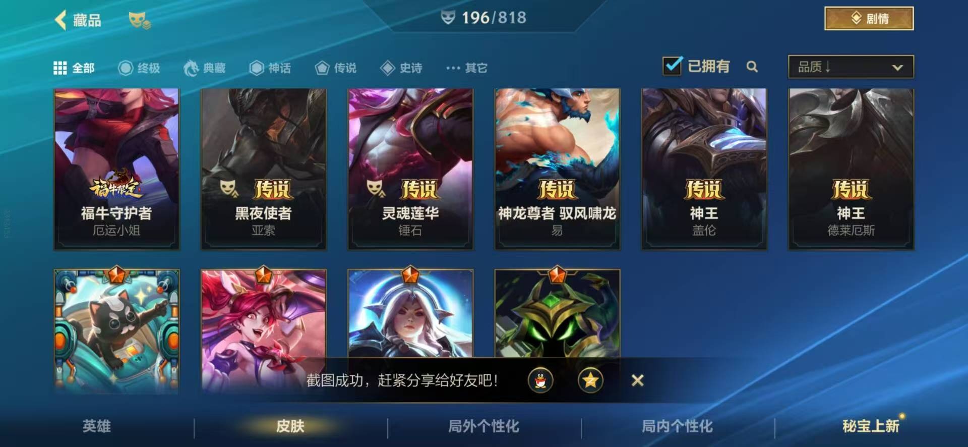 [17050702]2神话 10传说 78史诗 196皮肤 可二次 可修改实名