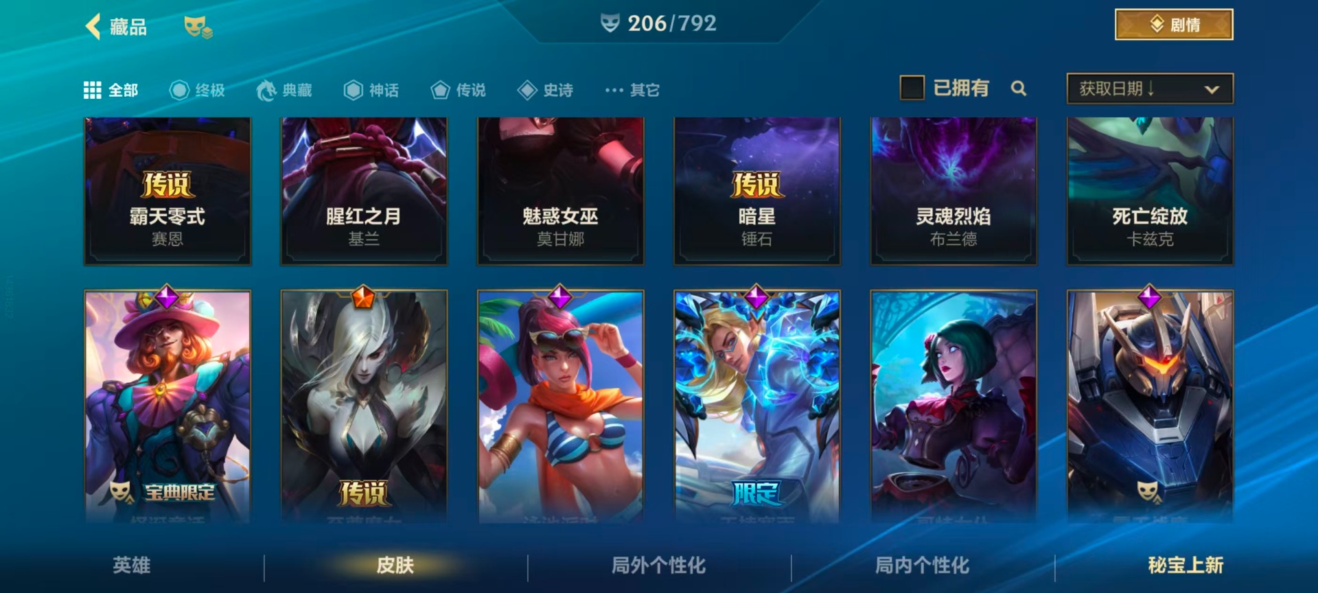 4神话 5限定 25传说 106史诗 206皮肤