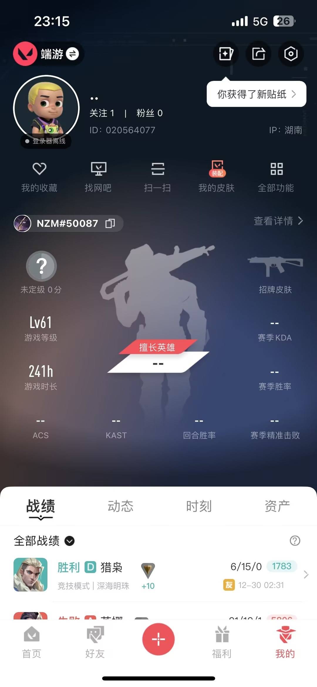 [17131331]2橙皮 1紫皮 16皮肤 16英雄 47卡面 310已用源晶 未定级段位