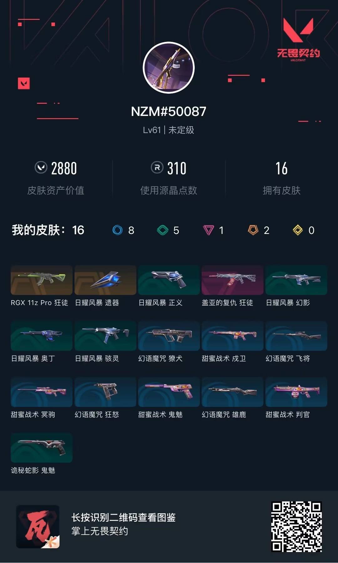 2橙皮 1紫皮 16皮肤 16英雄 47卡面 310已用源晶