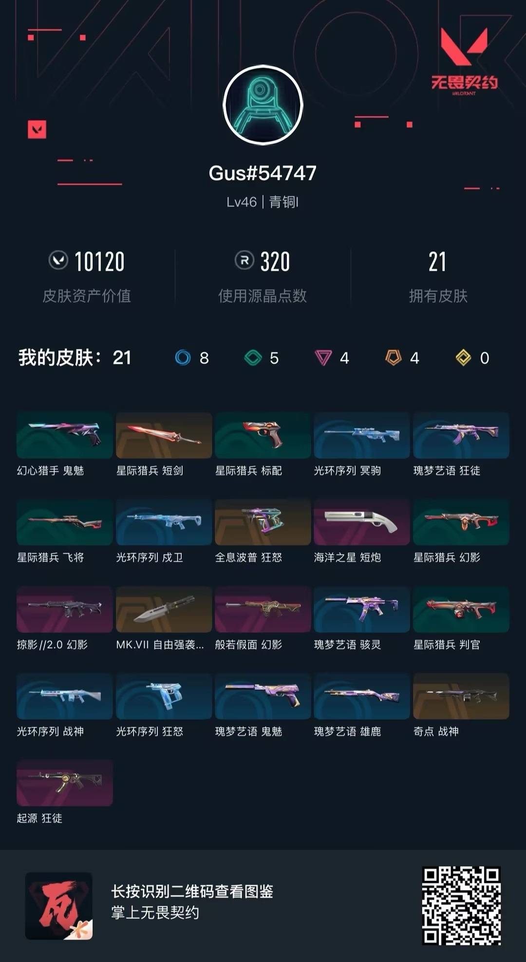 4橙皮 4紫皮 21皮肤 14英雄 33卡面 320已用源晶