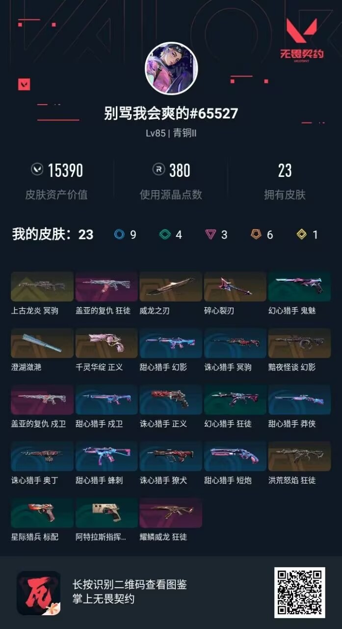 [16732231]6橙皮 1金皮 3紫皮 23皮肤 21英雄 42卡面 380已用源晶 青铜段位