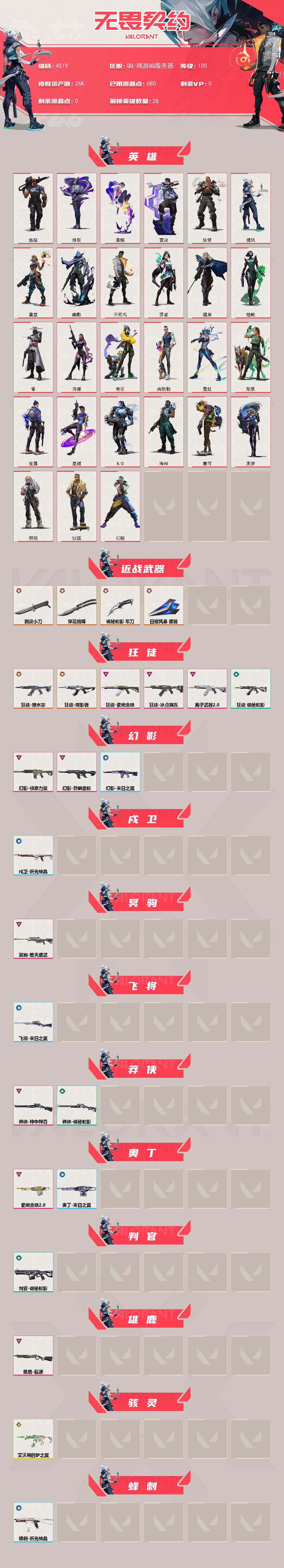 【英雄】:幻棱,炼狱,维斯,暮蝶,钛狐,壹决,铁臂,捷风,雷兹,幽影,不死鸟,贤者,猎枭,蝰蛇,零,芮娜,奇乐,尚勃勒,霓虹,斯凯,夜露,星礈,K/O,海神,盖可,黑梦,钢锁