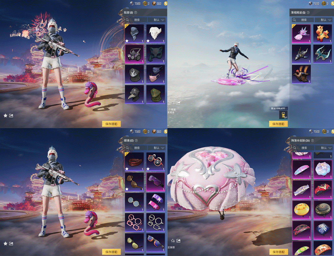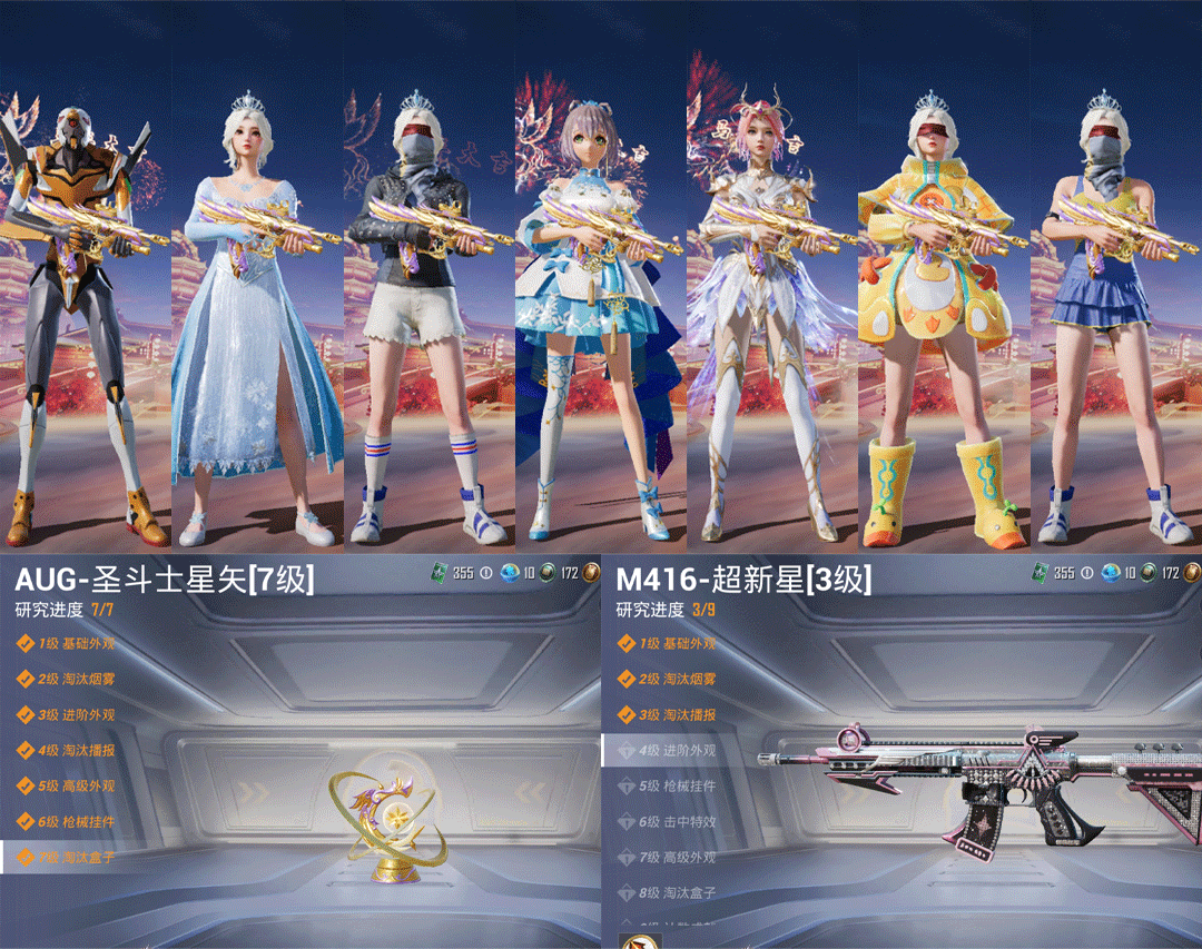 特效枪7:AUG-圣斗士星矢/7级,,M416-超新星/3级,,SCAR-L-万古烈焰/3级,,MG3-洛神天依/7级,