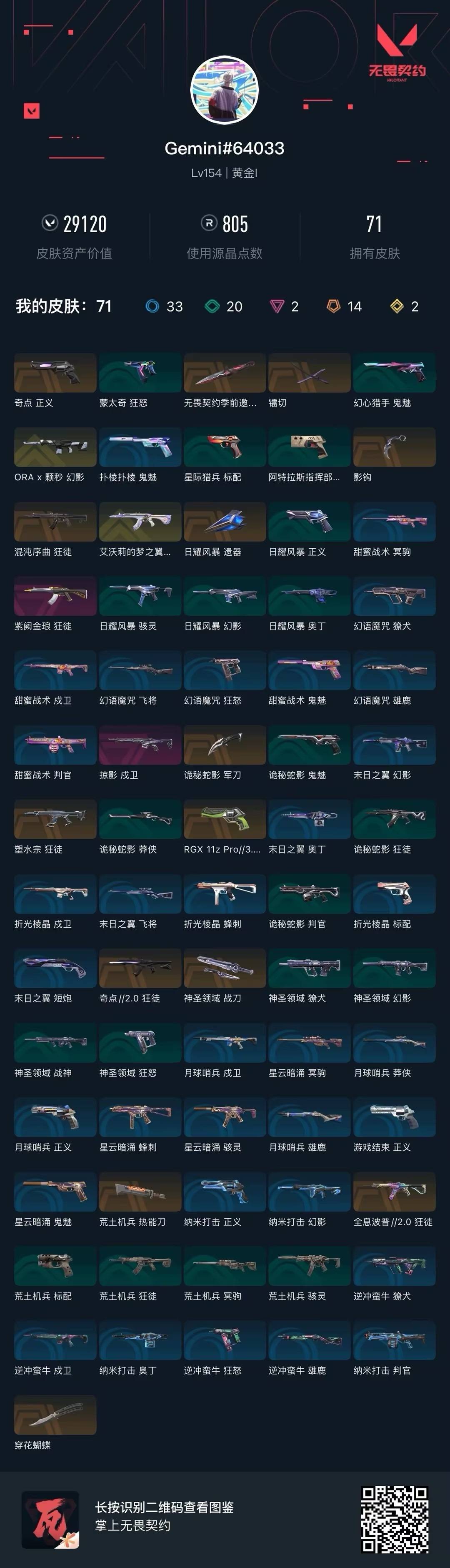 [17140229]14橙皮 2金皮 2紫皮 71皮肤 20英雄 106卡面 805已用源晶 黄金段位