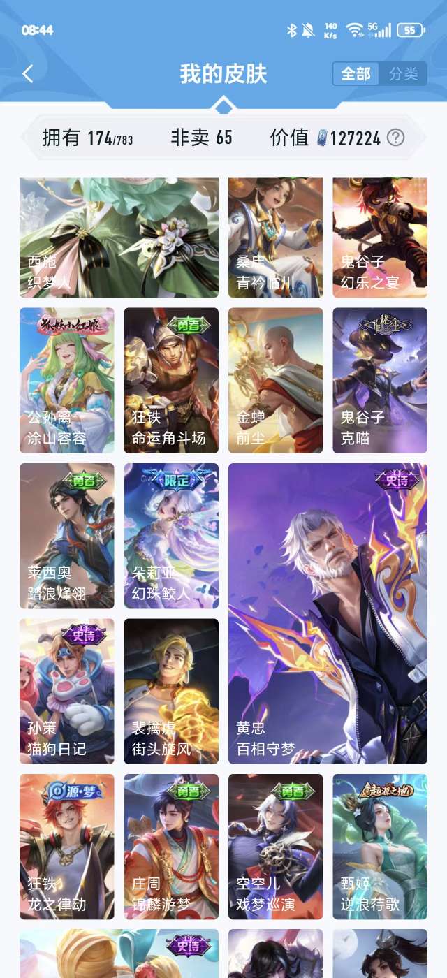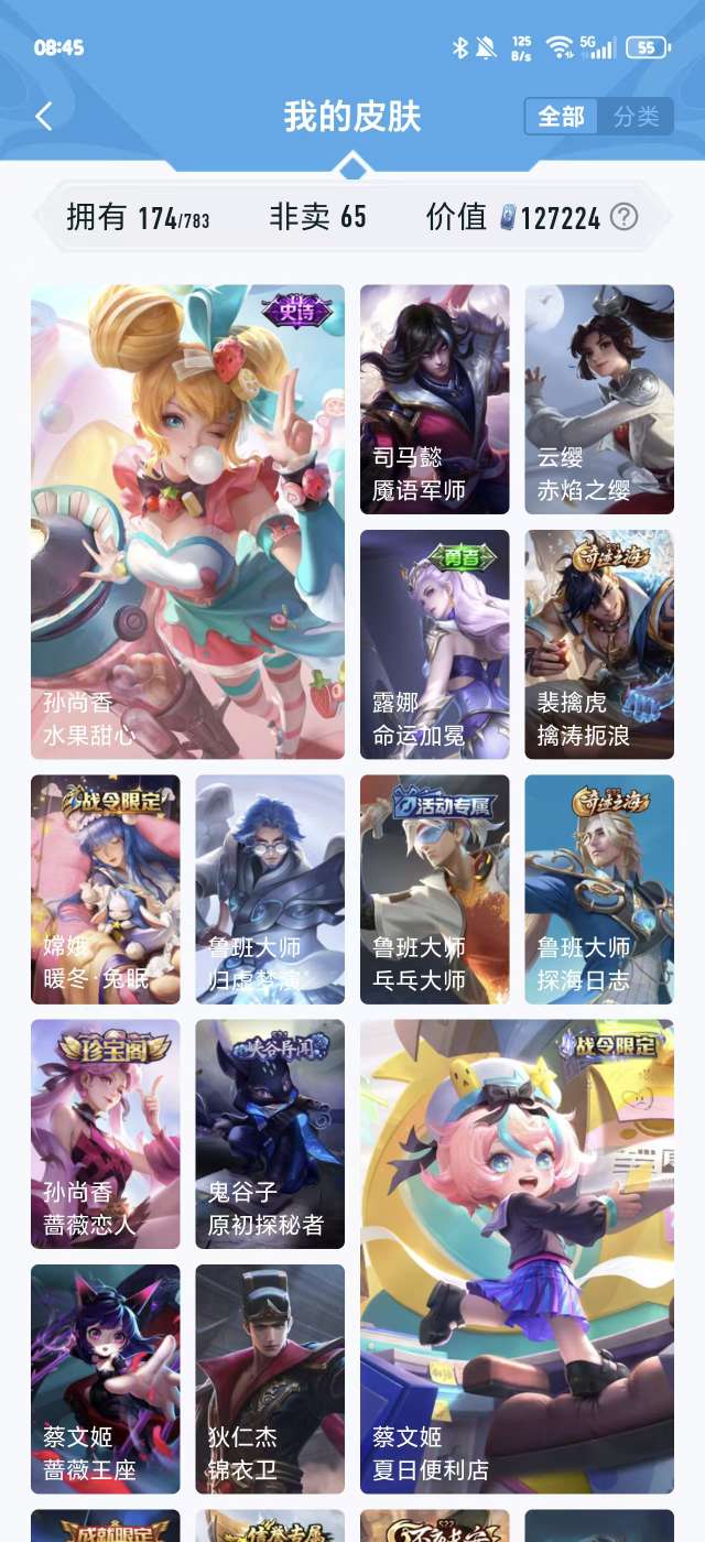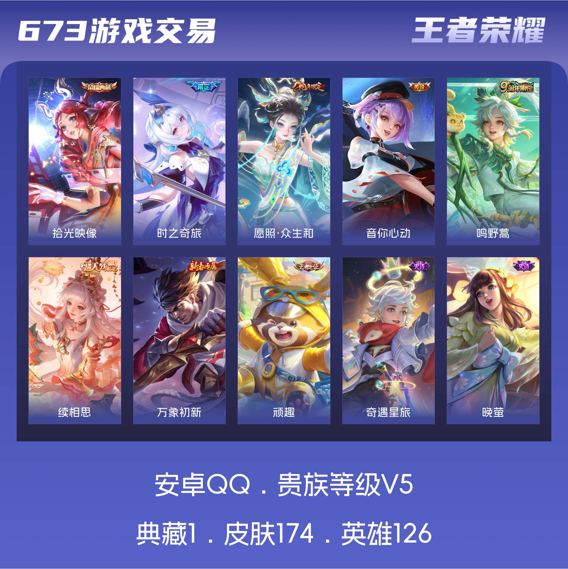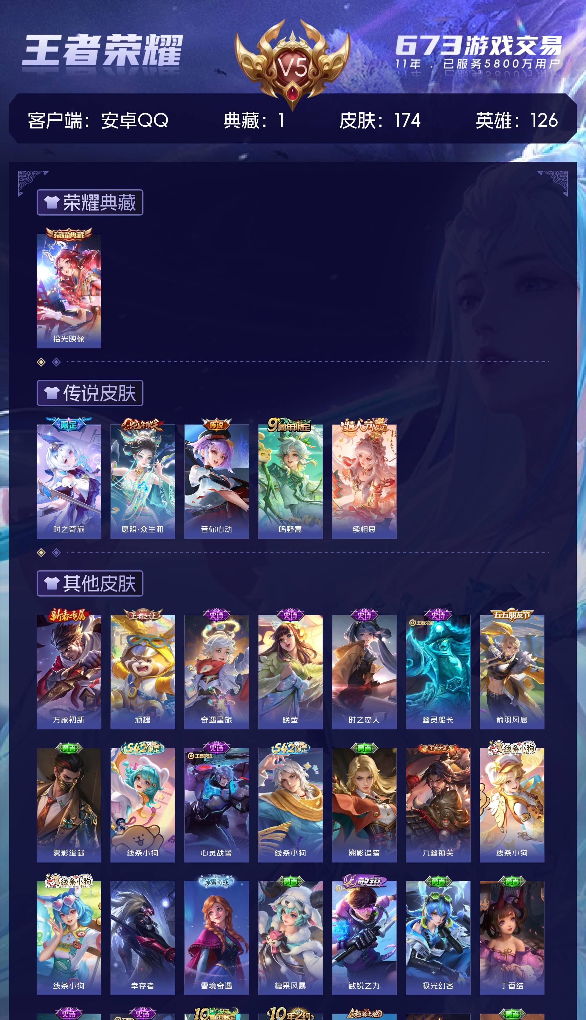 V5 皮肤174 英雄126 非凡王者 荣耀典藏1 传说5 其他皮肤173