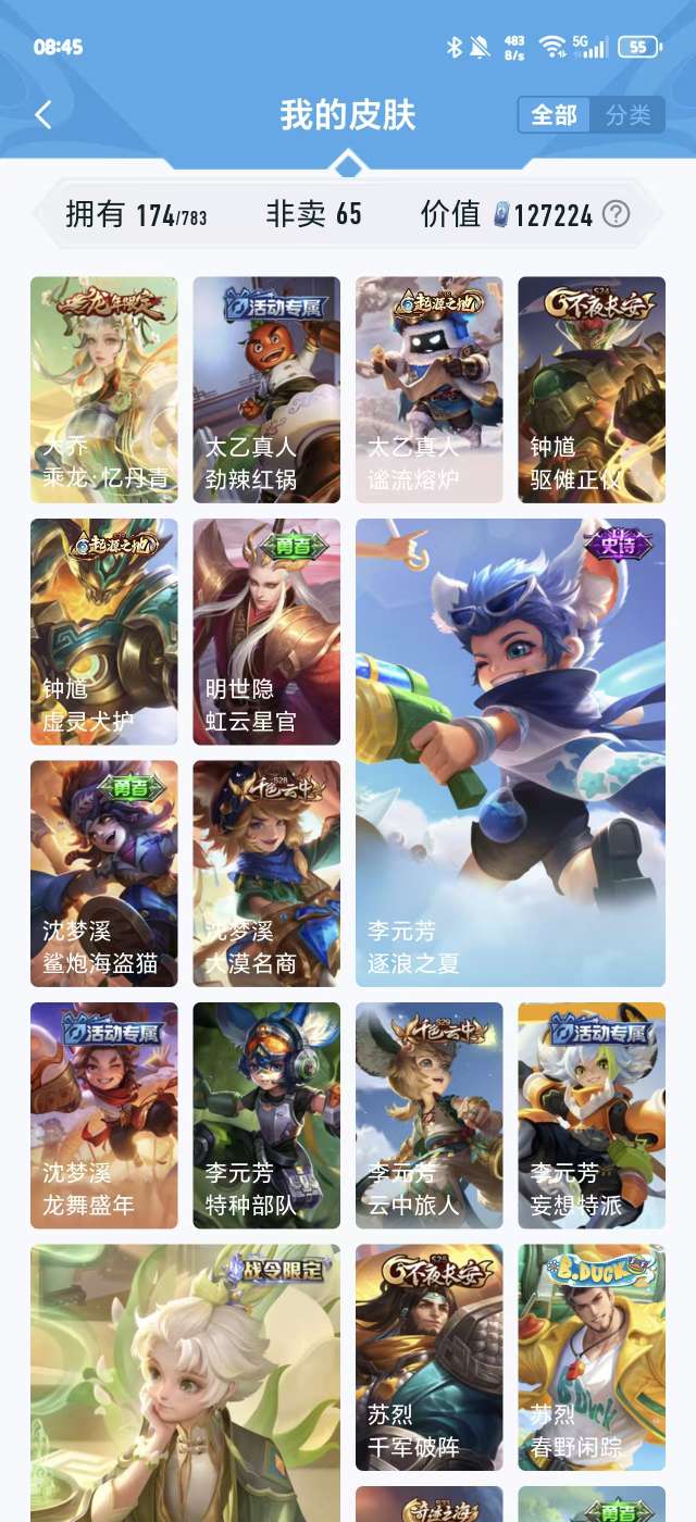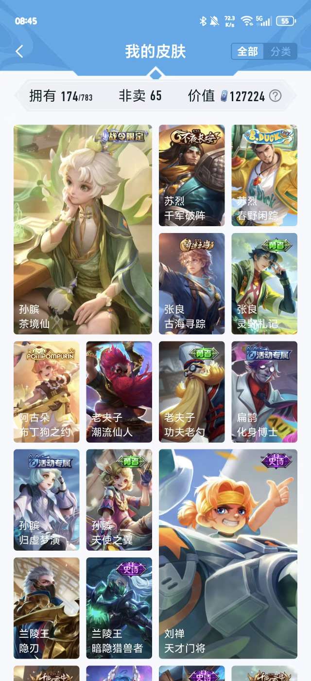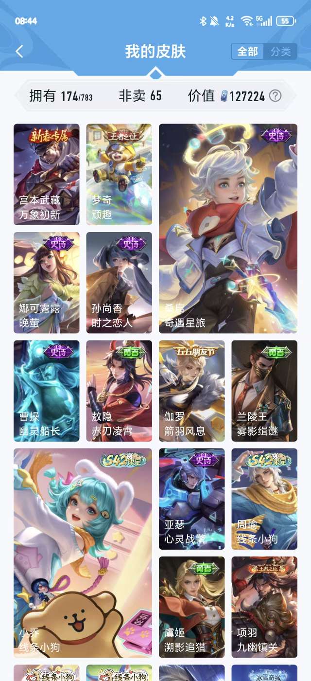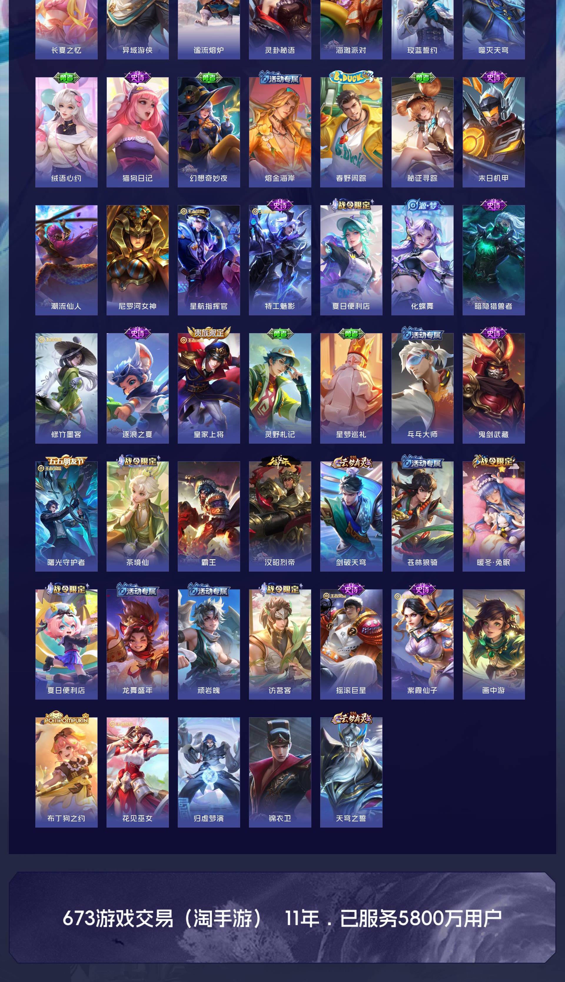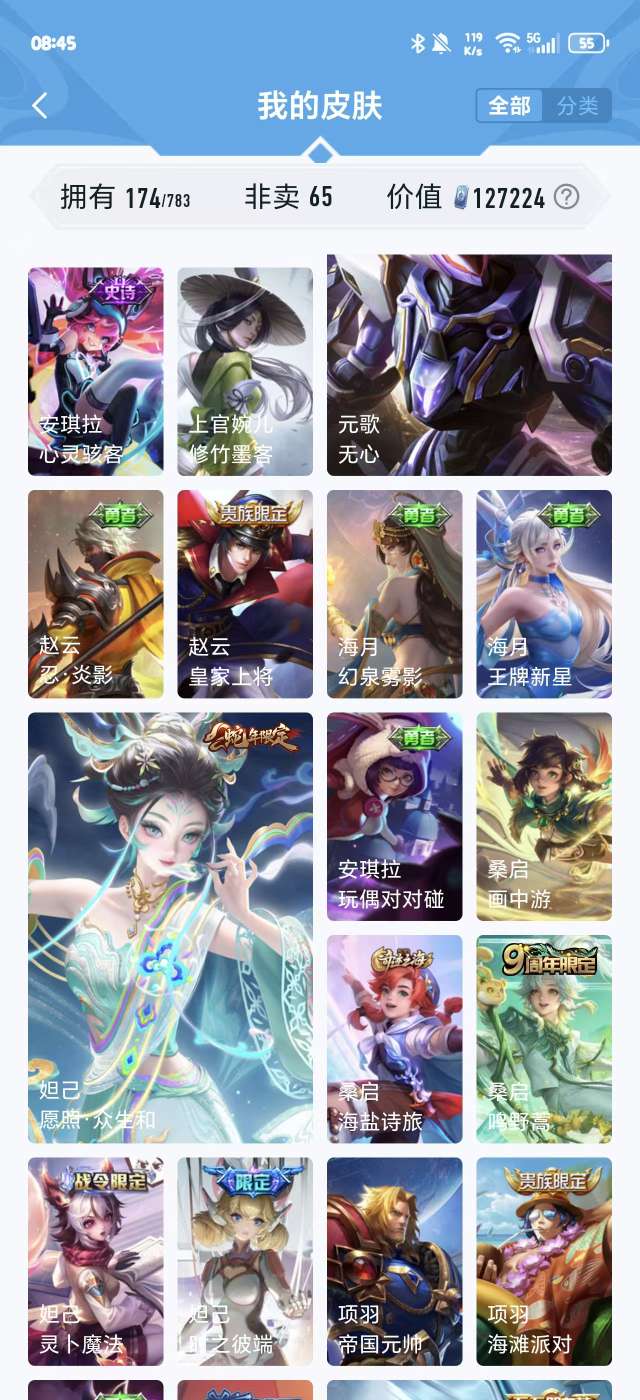 V5 皮肤174 英雄126 非凡王者 荣耀典藏1 传说5 其他皮肤173