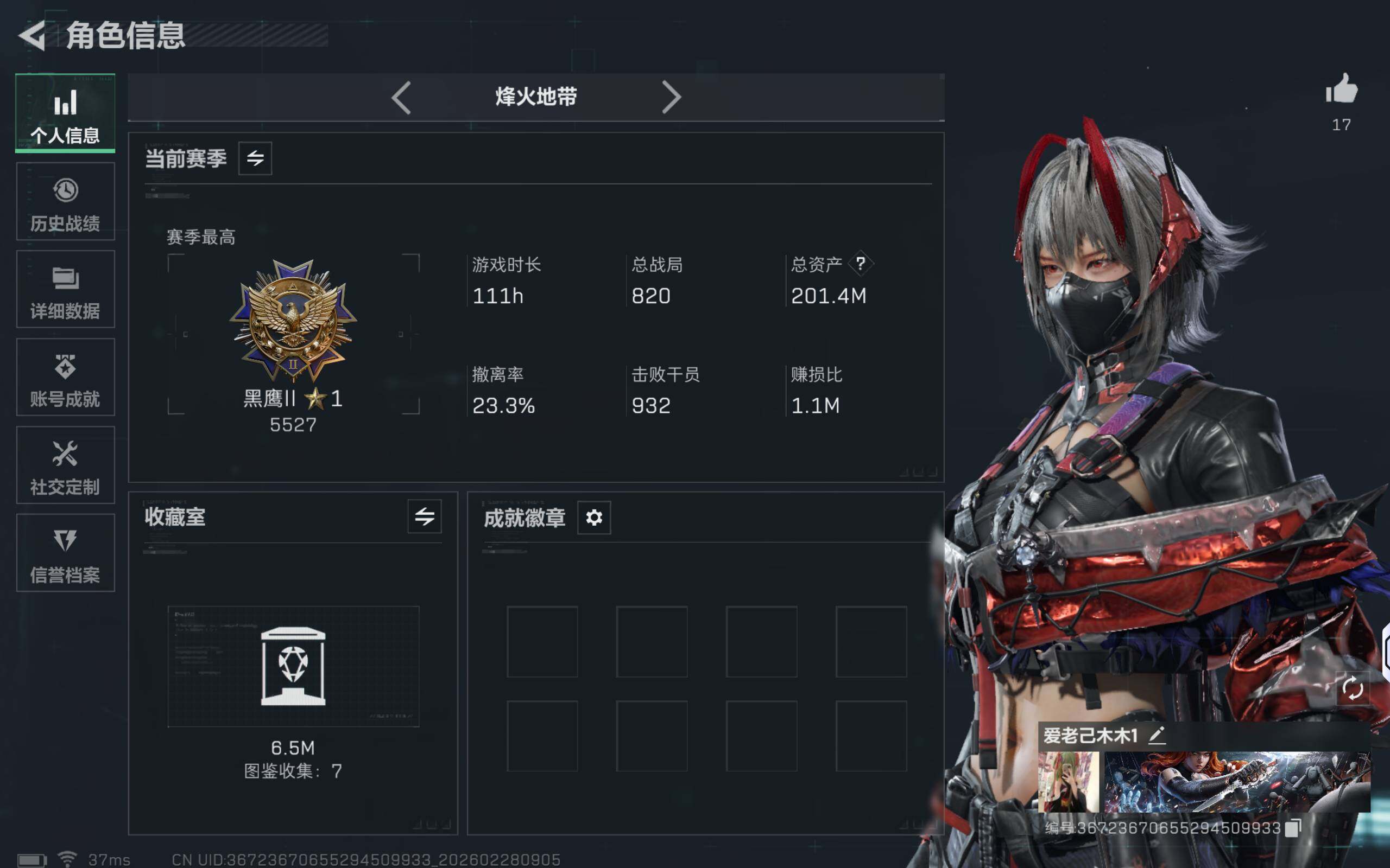 201m总资产-93249k哈伏币-60烽火等级-黑鹰-22战场等级-上等兵