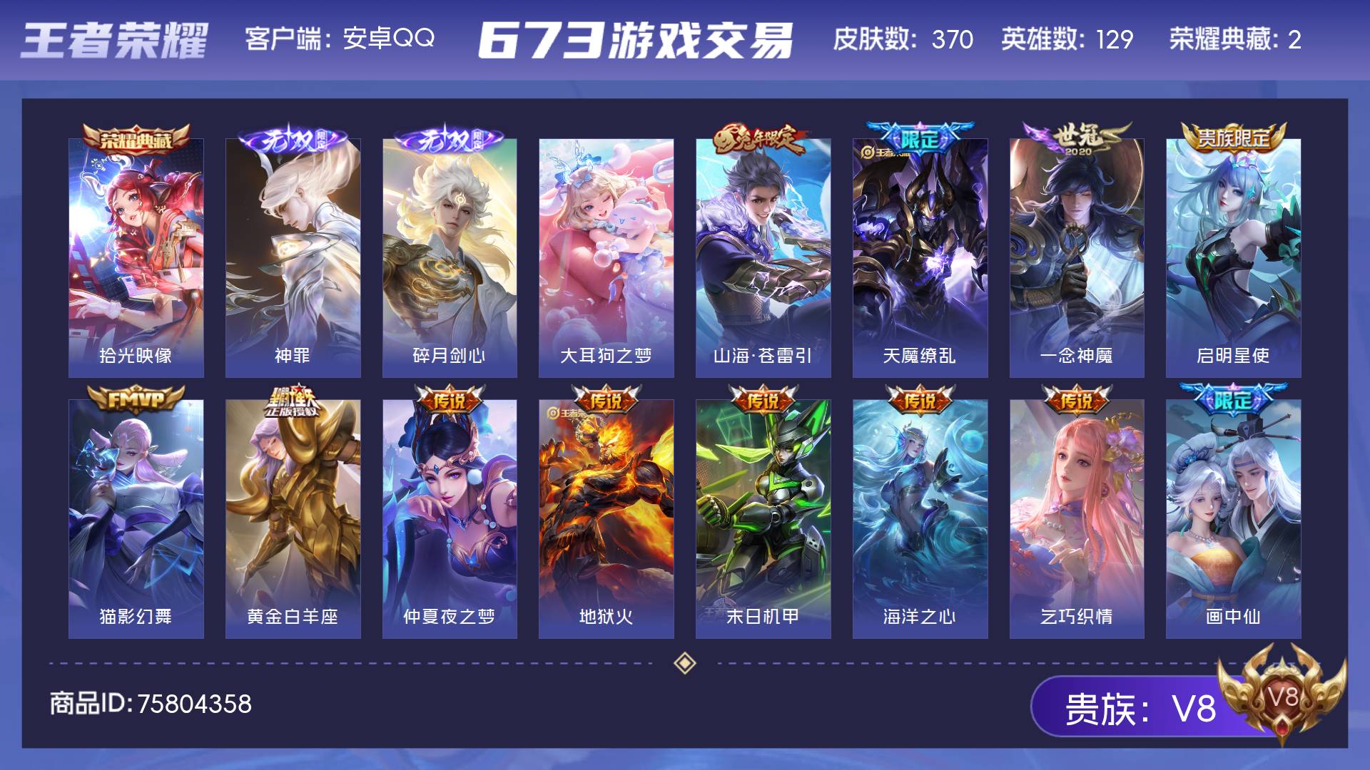 安卓Q-女号-v8-370皮-2典藏-2无双-1珍品-19传说-3星传说