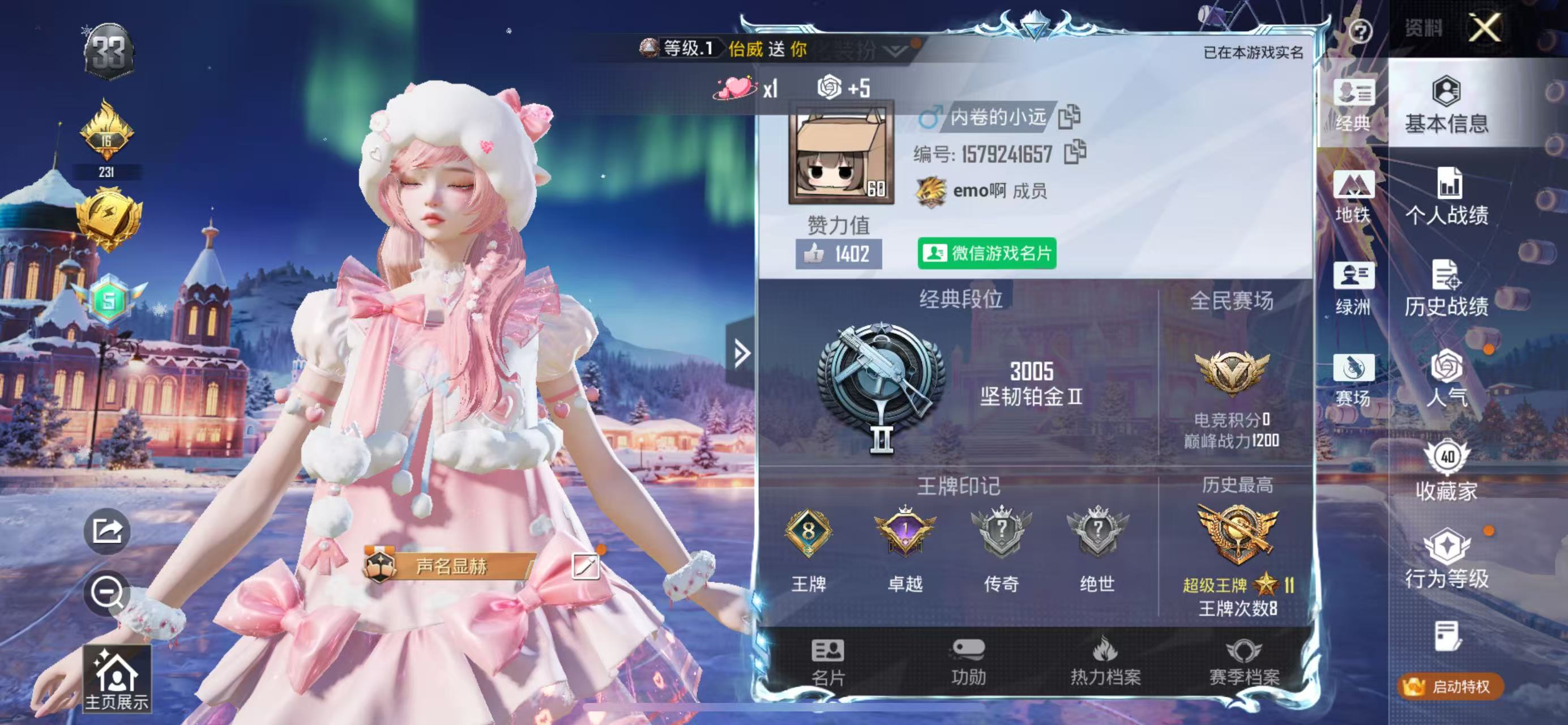 8王牌印记-1粉装-4特效枪-32475热力值-77套装-113枪皮-1卓越印记