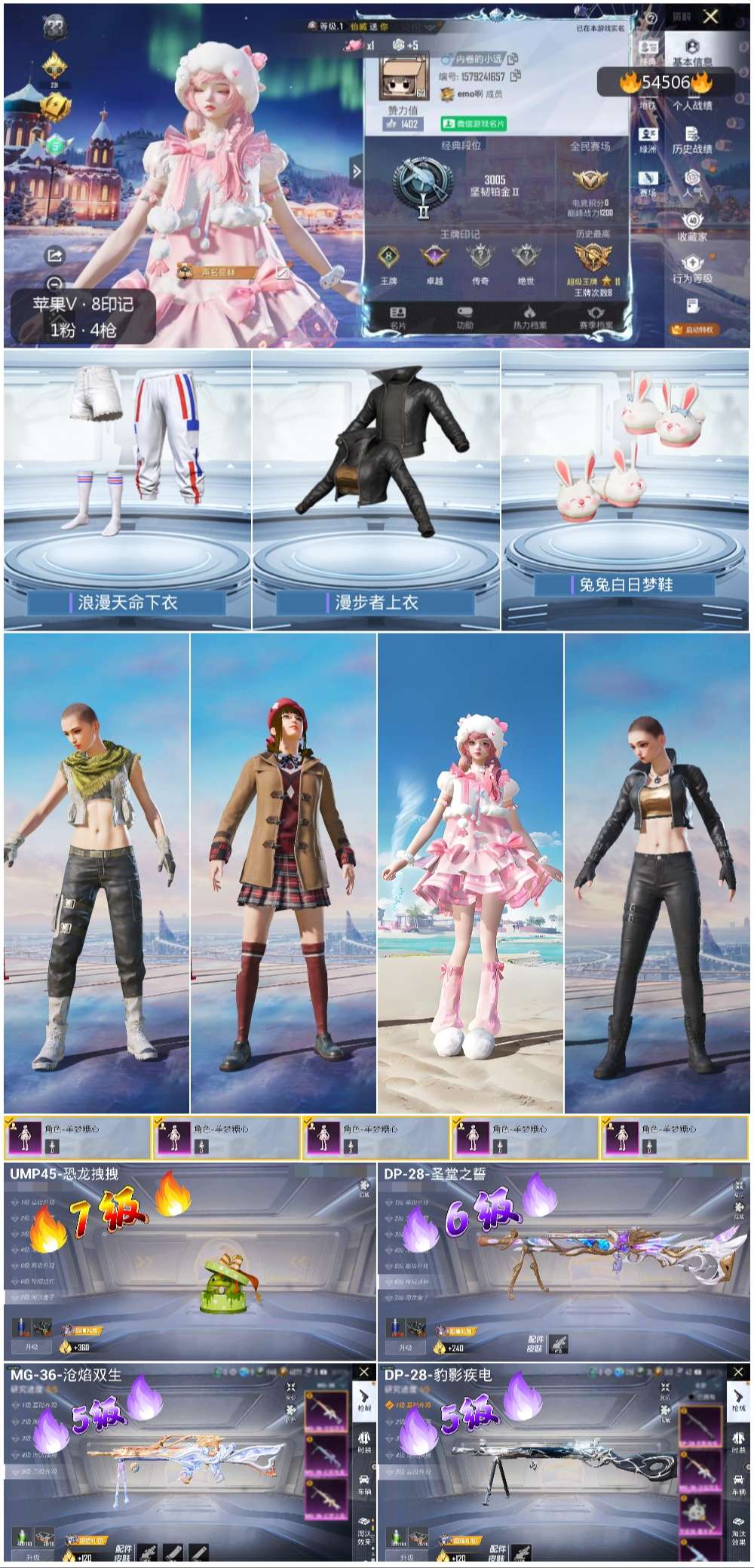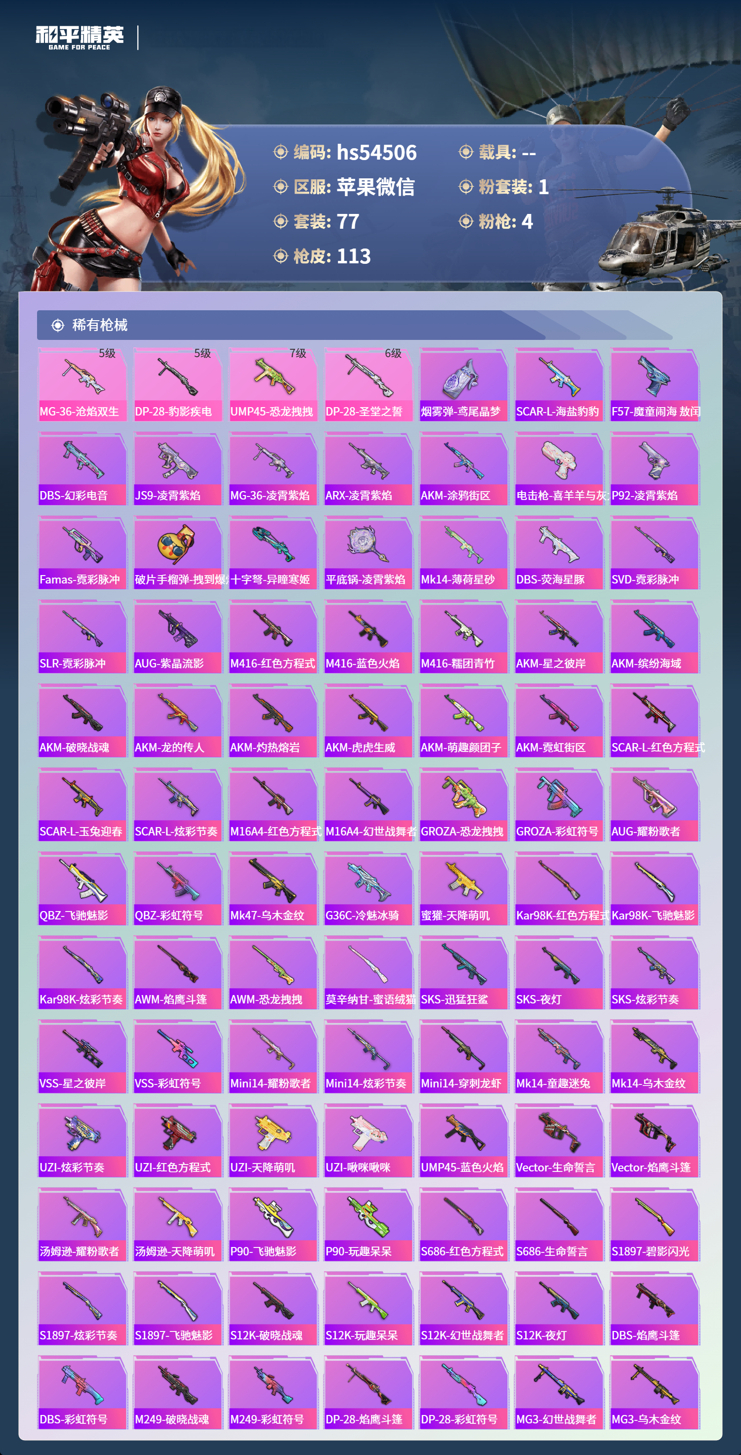hs54506 苹果微信-8王牌印记-1粉装-4特效枪-32475热力值-77套装-113枪皮-1卓越印记