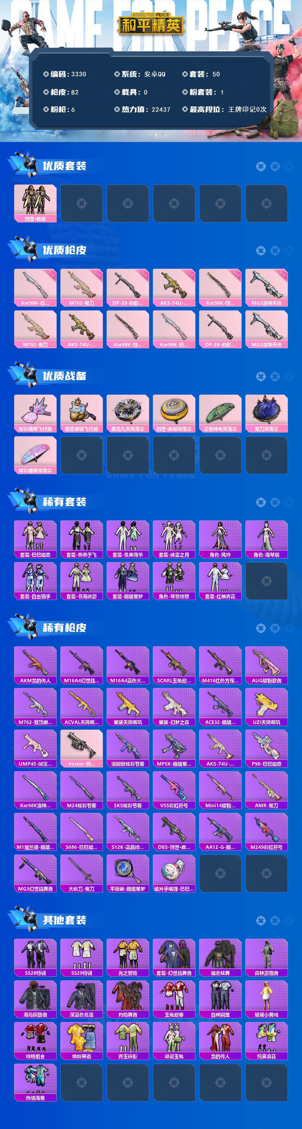 满级地铁 安卓 手Q-1粉装-6特效枪-0载具-2粉色飞行器-22437热力值-0王牌印记-50套装-82枪皮