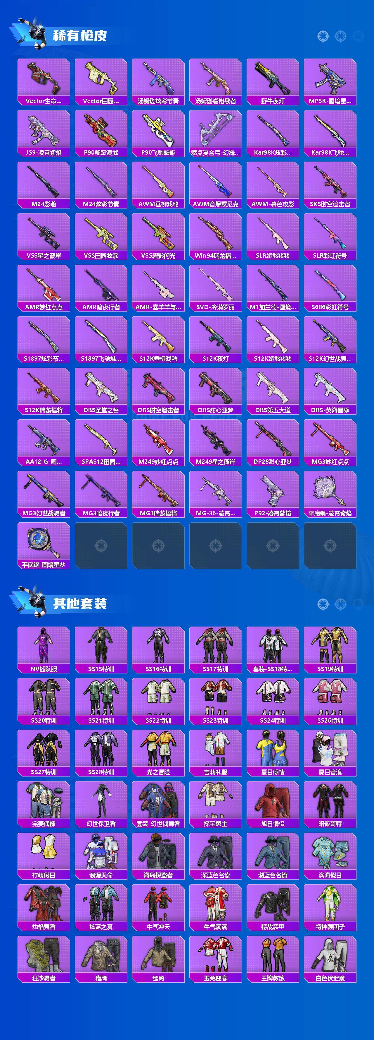 【粉色枪皮】:AKS-74U-森灵之息,Kar98K-巳巳如意,Mk14-福马献瑞,SLR-暗夜玫瑰,DP-28-豹影疾电