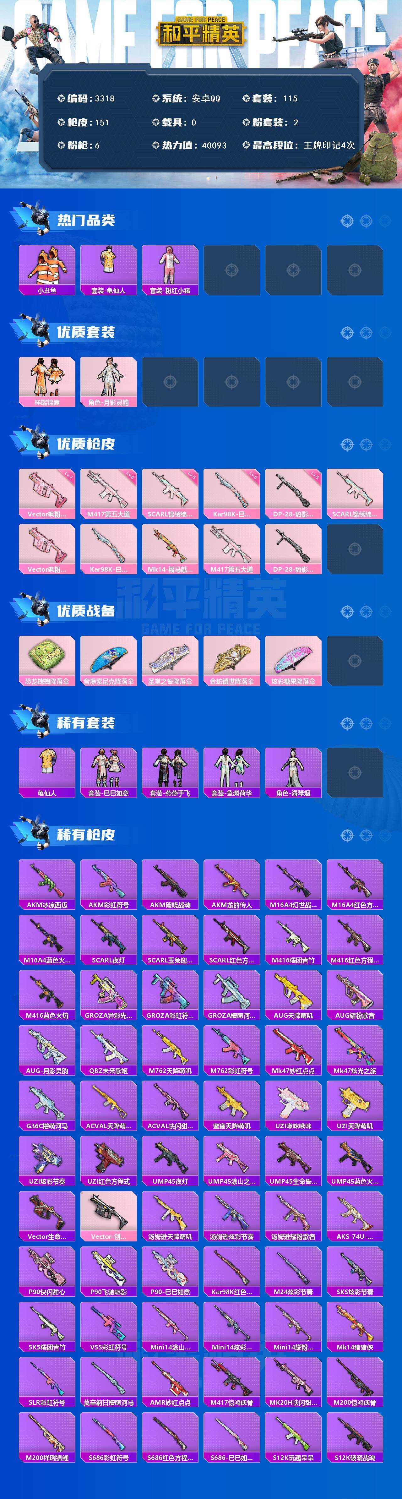 安卓 手Q-2粉装-6特效枪-0载具-0粉色飞行器-40093热力值-4王牌印记-115套装-151枪皮