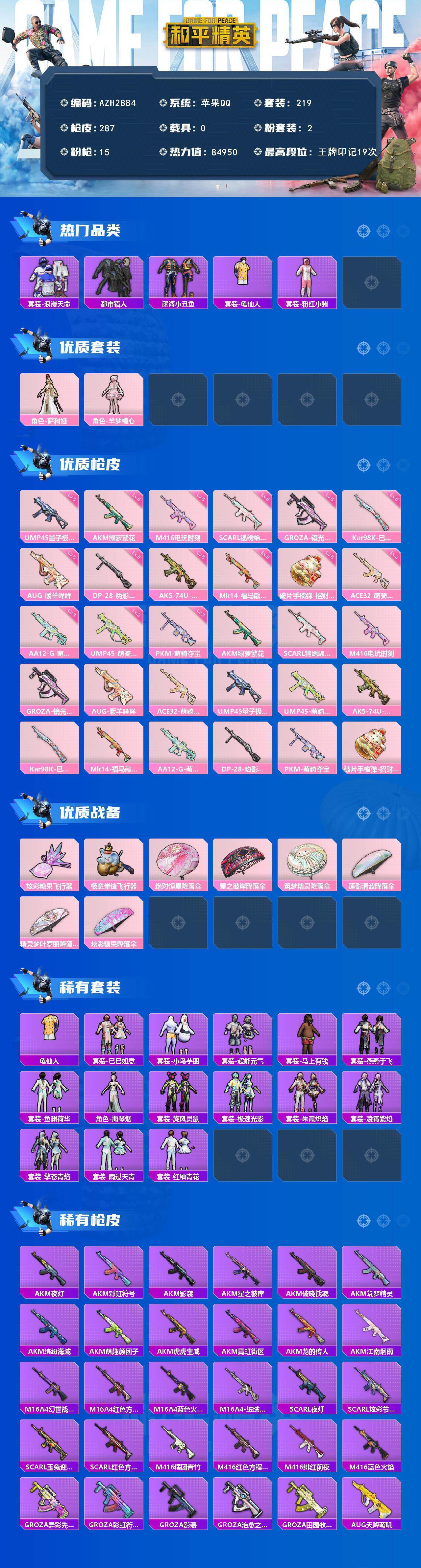 【AZH2884】苹果 手Q【19印记 都市羊梦糖心 深海小丑鱼浪漫天命 小鸟芋圆元气发射仓鼠灰灰】2粉装-15特效枪-0载具-3粉色飞行器-84950热力值-19王牌印记-219套装-287枪皮