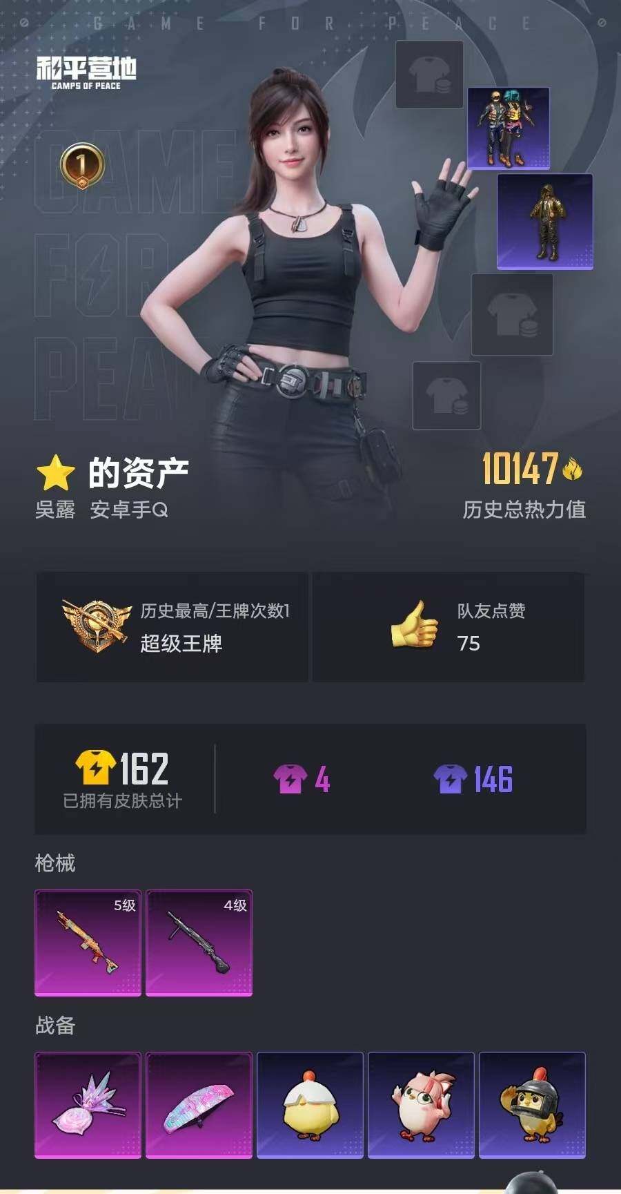 44套装/枪械2/装备53/战备36/王牌印记1/热力值10147/五级Mk1