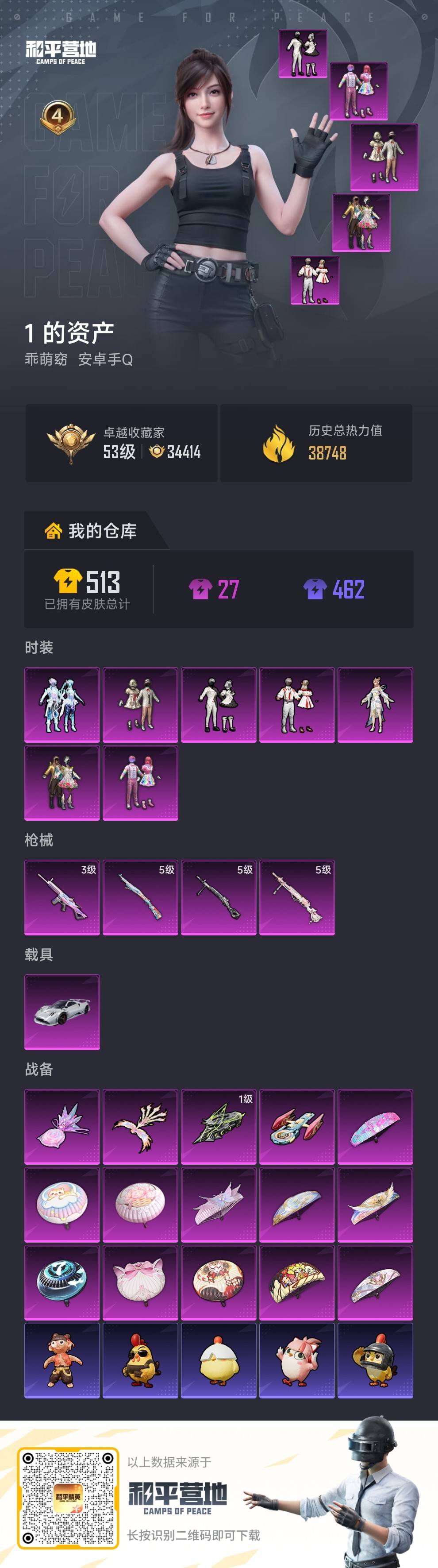4王牌印记-7粉装-4特效枪-1载具-38748热力值-86套装-113枪皮