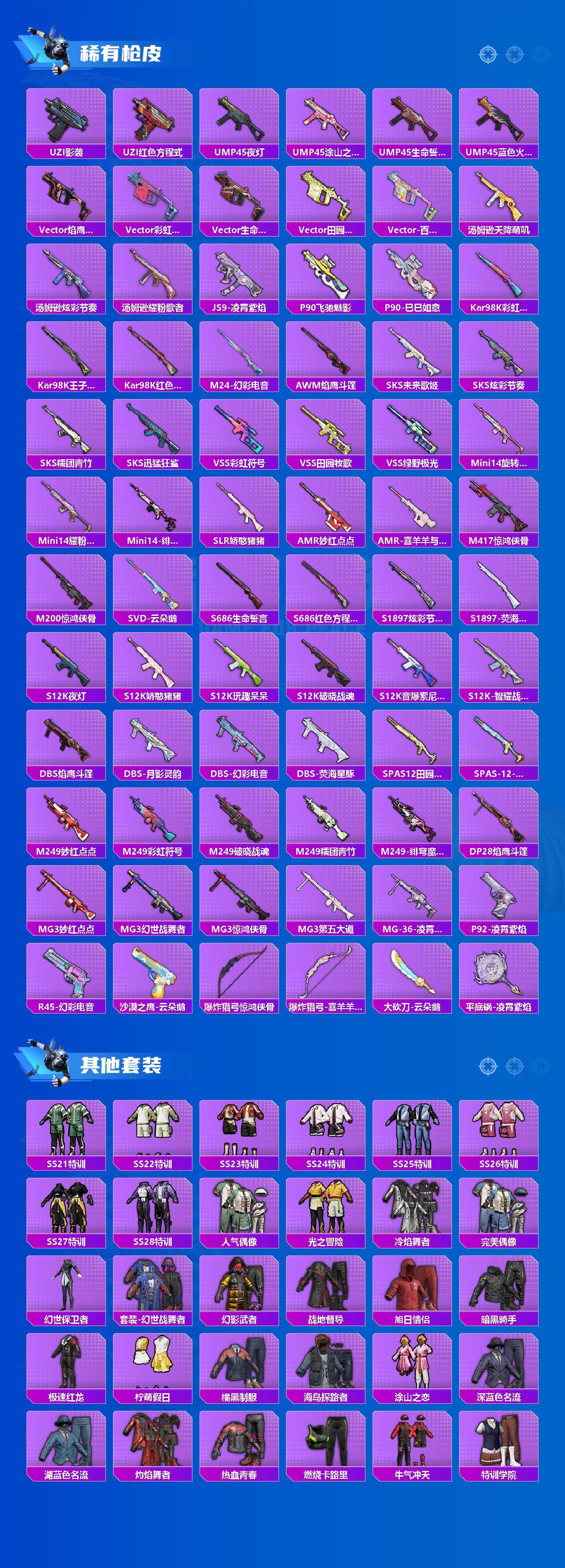 【HP691】136套装/枪械5/装备229/载具2/战备136/王牌印记4/热力值58529/七级Vector-绯穹魔姬/五级Kar98K-巳巳如意/五级Mk14-甜梦熊击/五级DP-28-豹影疾电/四级平底锅-喜羊羊与灰太狼/套装-都市猎人/套装-龟仙人/套装-粉红小猪/角色-萨利娅/角色-绯穹魔姬/角色-羊梦糖心/玛莎拉蒂Quattroporte(夜幕蓝)/宝马M4(圣保罗黄)/Vector-绯穹魔姬/Kar98K-巳巳如意/Mk14-甜梦熊击/DP-28-豹影疾电/平底锅-喜羊羊与灰太狼
