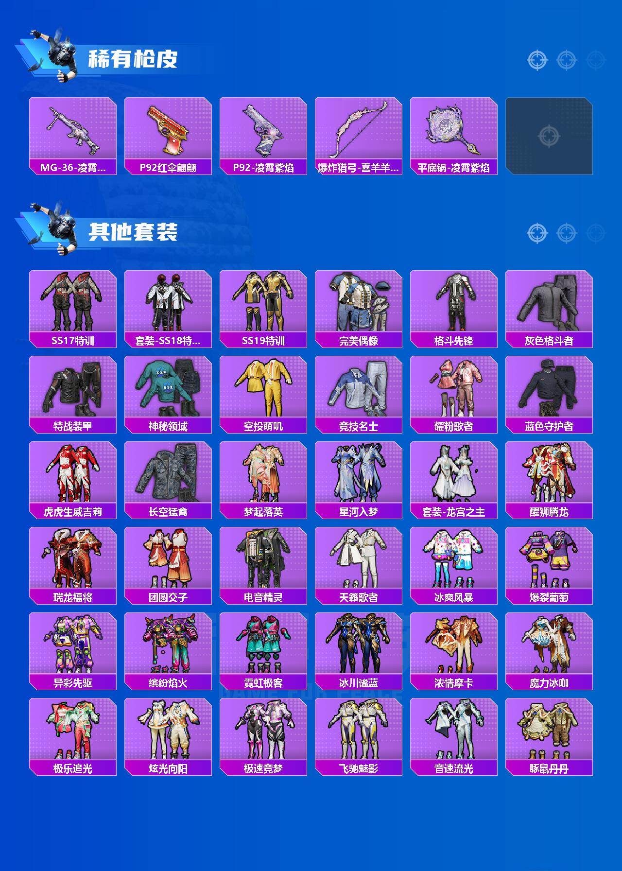 【粉色枪皮等级】:GROZA-焦糖拿铁(五级),Kar98K-巳巳如意(二级),SKS-碧影闪光(四级),M249-蓝莓炮弹(四级),DP-28-豹影疾电(三级)