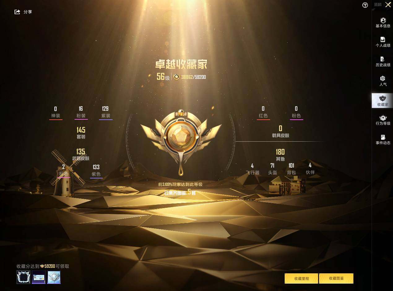 16粉装-2特效枪-0载具-2粉色飞行器-49650热力值-4王牌印记-145套装-147枪皮