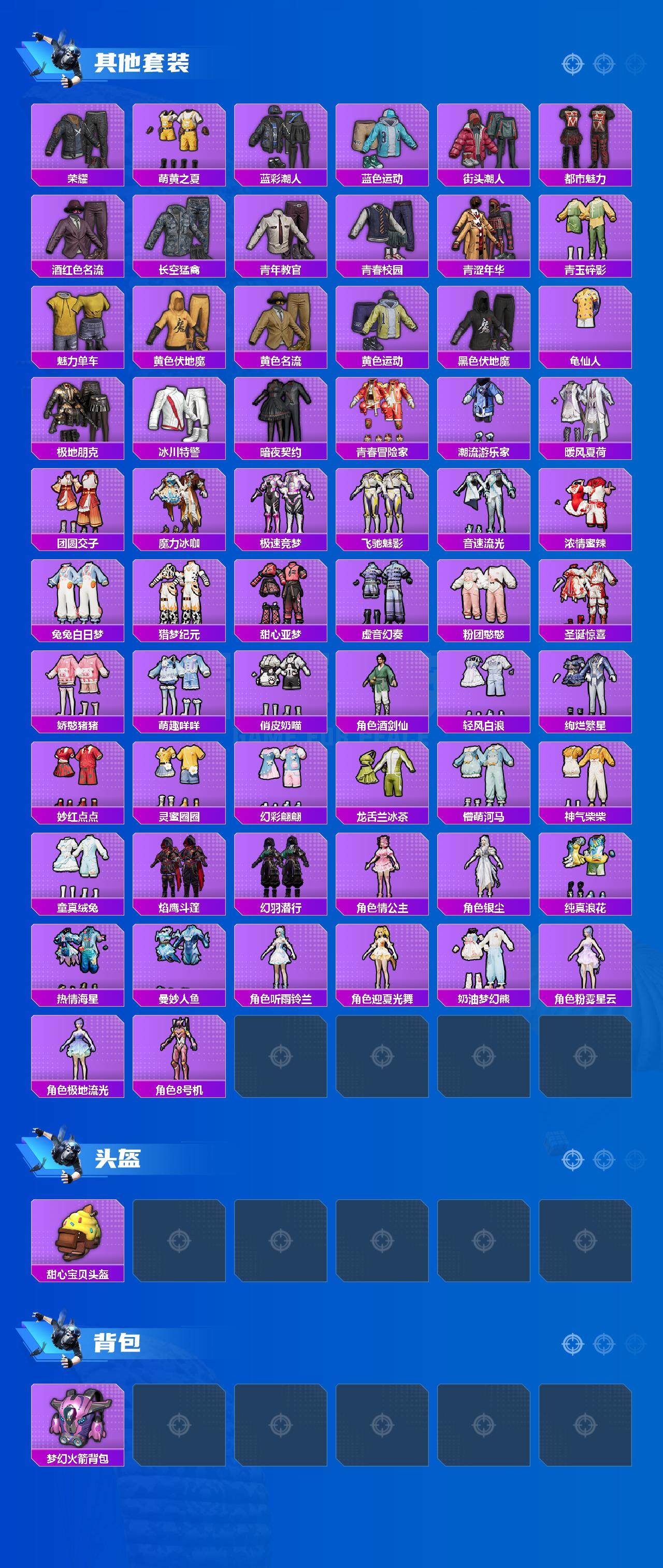 【粉色套装】:粉装-宝贝奶油派,粉装-天使彩虹糖,粉装-冰霜白皇,粉装-童趣迷兔,粉装-炙焰红王,粉装-酣梦娃娃,粉装-傲雪凌霜,粉装-霁雪冰心,粉装-冰川红玫,粉装-第五大道,角色-呆萌星弥,角色-美雪,角色-美琪,角色-樱桃泡泡,角色-奇迹舞步 美琪,角色-奇迹舞步 美雪