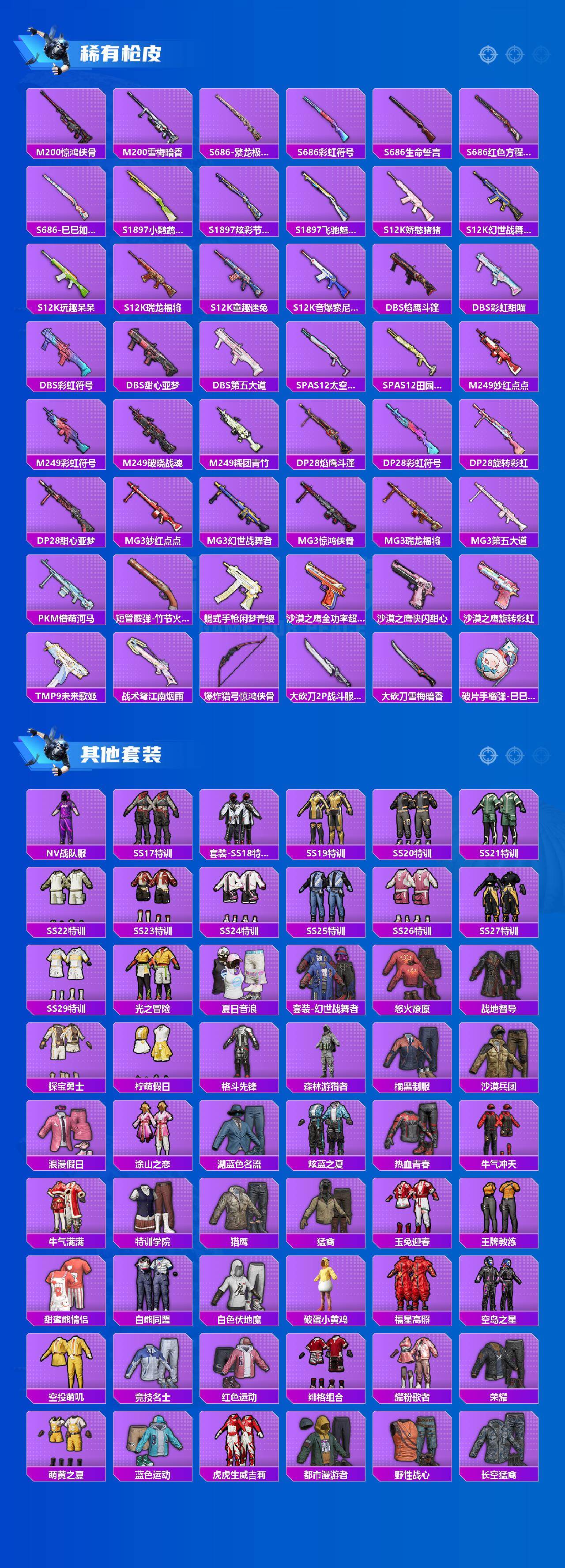 【HP1182】165套装/枪械9/装备327/载具2/战备167/王牌印记9/热力值79868/五级AKM-绿萝繁花/六级SCAR-L-纯梦嫁纱/五级SCAR-L-锦绣绵绵/六级M416-五爪金龙/一级M416-暖熊萌萌/五级Kar98K-巳巳如意/六级M249-绒雪飘舞/四级MG3-梦幻舞会/二级爆炸猎弓-雪梅暗香/套装-深海小丑鱼/套装-龟仙人/粉装-炙焰红王/粉装-沙场疾风/角色-复仇流浪者/粉装-霞光圣骑/粉装-暗夜鎏金/粉装-第五大道/超级赛亚人-孙悟空/粉装-未来歌姬/角色-蔷薇星