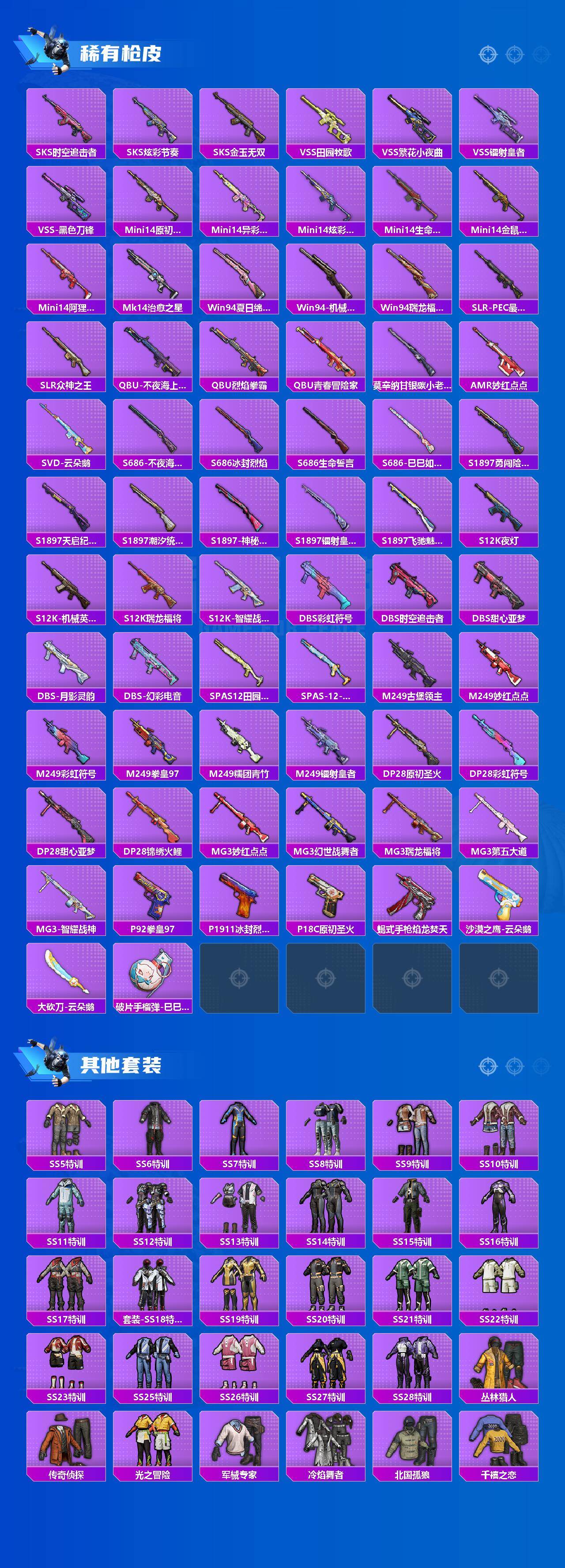 【HP642】230套装/枪械9/装备419/载具1/战备213/王牌印记6/热力值100568/五级SCAR-L-纯梦嫁纱/六级M416-心之恋语/七级GROZA-香水柠檬/五级GROZA-镜光银凌/五级AUG-暖羊咩咩/二级MK12-雪月幻音/五级Kar98K-巳巳如意/五级Mk14-甜梦熊击/五级DP-28-豹影疾电/套装-派对舞王/套装-奇异狩猎者/套装-金羽特工/旭日初心兜帽大衣/套装-暗影哥特/套装-浪漫波比/角色-Mark.06/粉装-PEL轰鸣竞梦者/粉装-狩月元帅/粉装-锦绣火