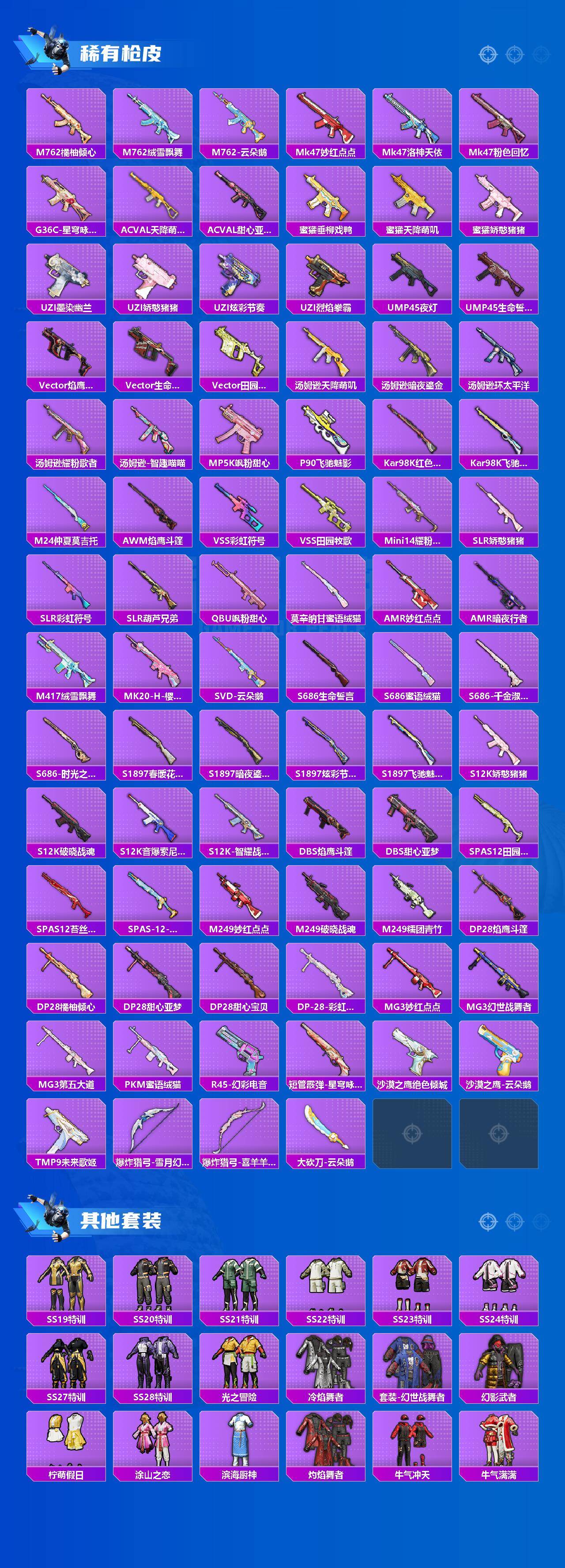 【粉色枪皮等级】:SCAR-L-锦绣绵绵(五级),M416-电玩时刻(五级),GROZA-巴啦啦小魔仙(七级),