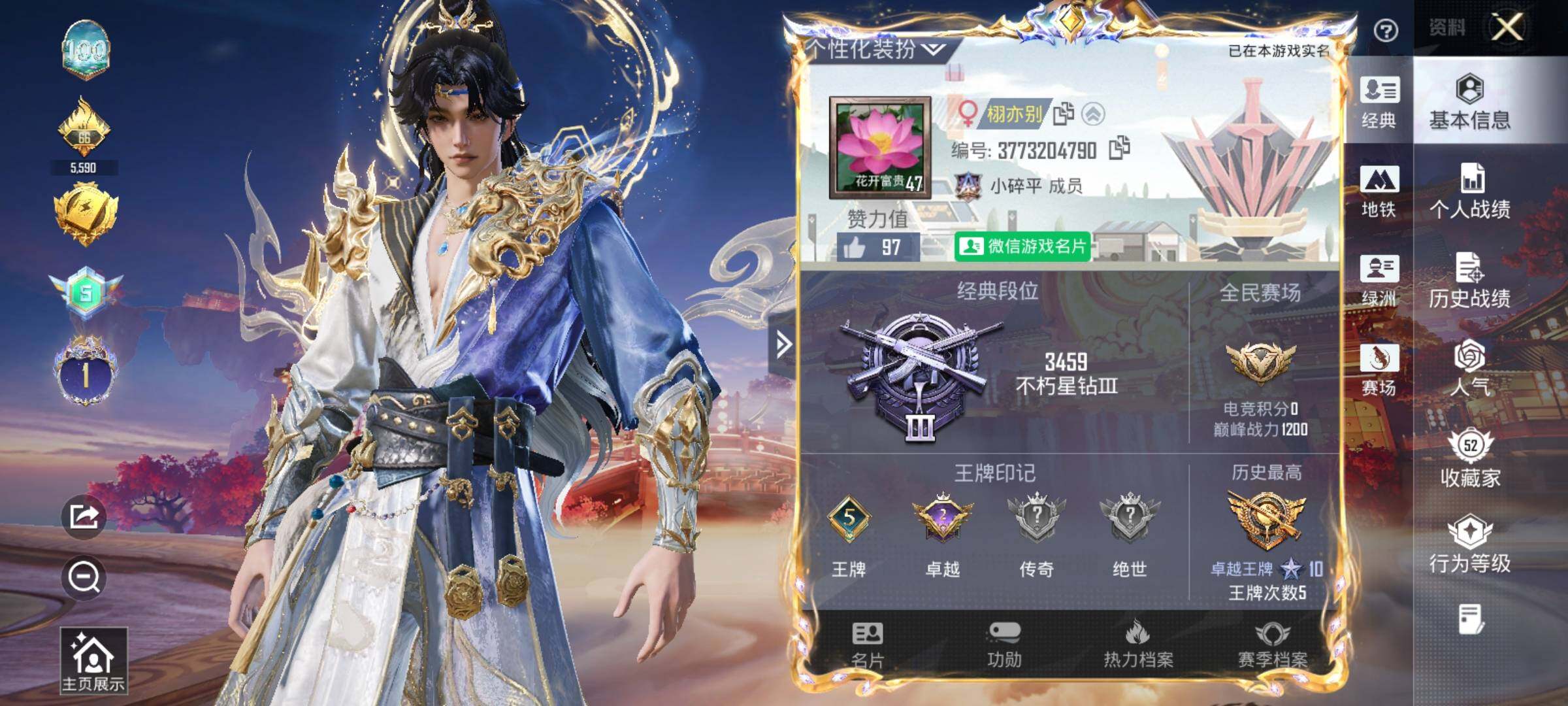 【AZH2893】安卓 微信【一级驭风 雪国幻梦放客神游洛天依 暗影哥特浪漫天命小丑鱼 满级风花雪月M416】1神装-4粉装-9特效枪-0载具-3粉色飞行器-41675热力值-5王牌印记-99套装-129枪皮